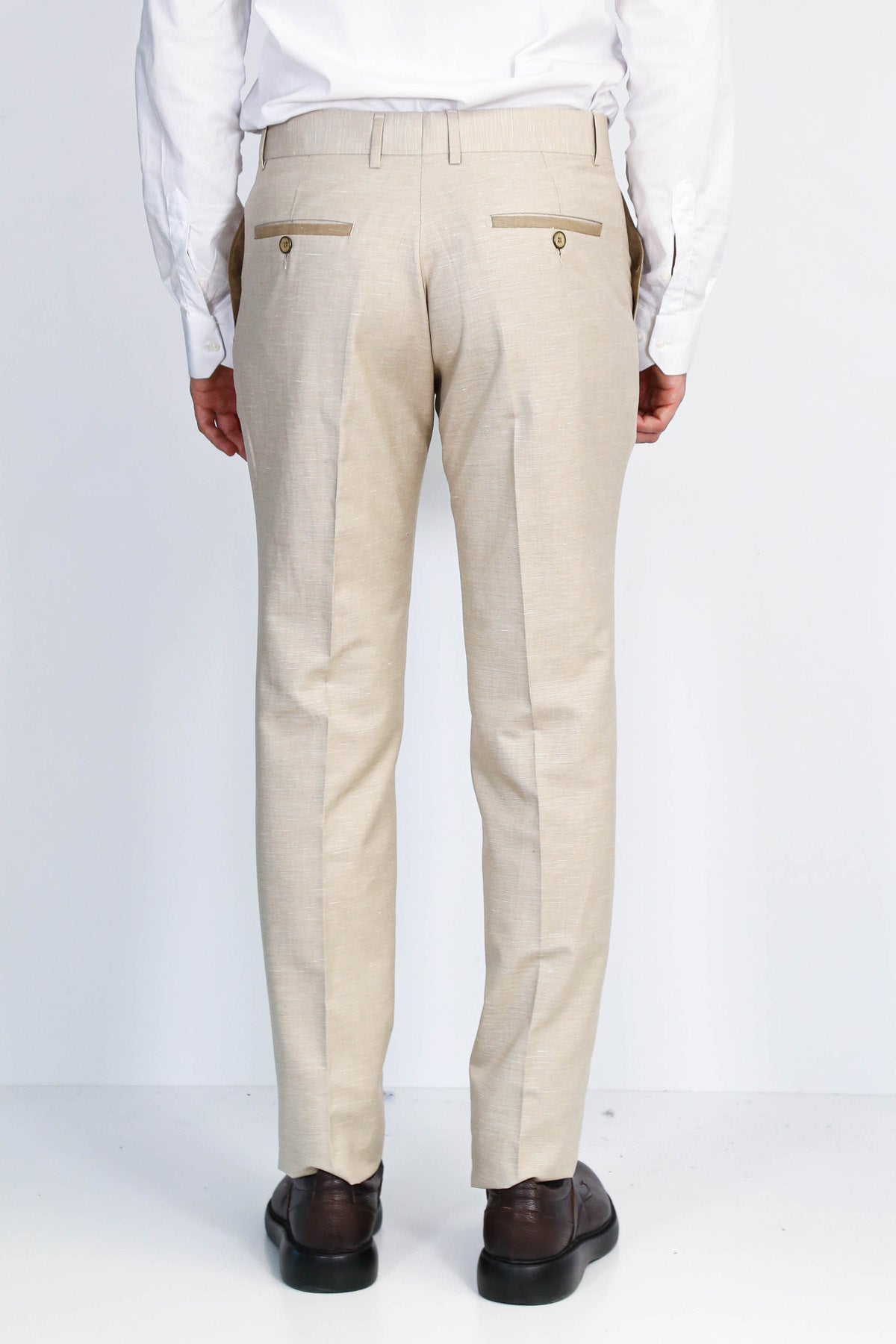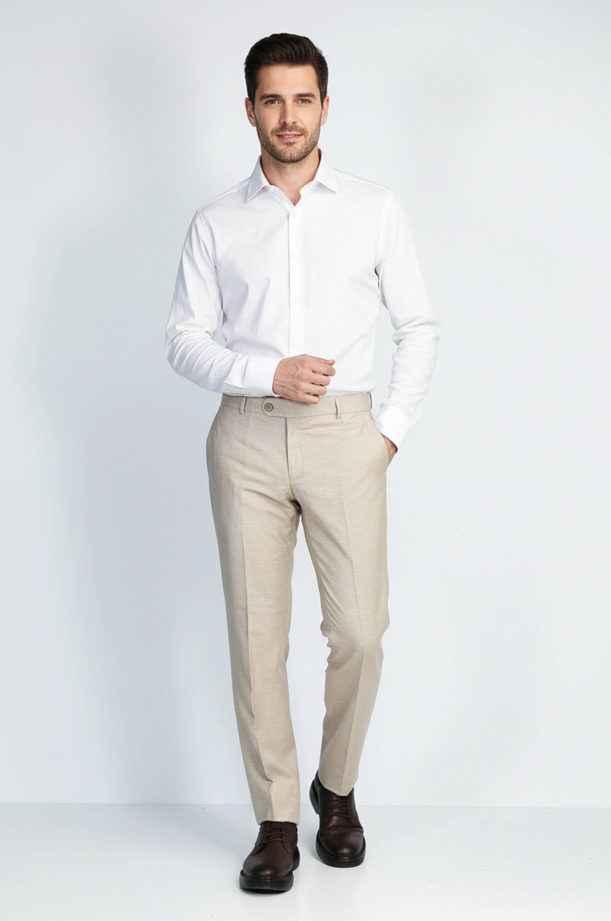 Bej Dokulu Slim Fit Kumaş Pantolon - Wessi