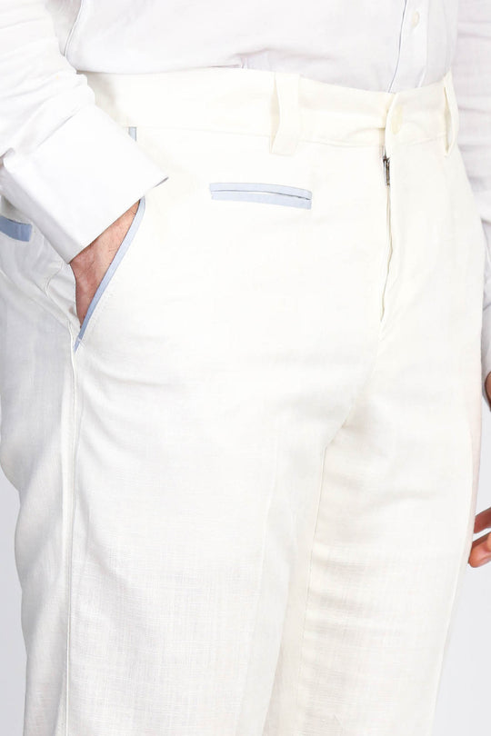 Beyaz Düz Desenli Slim Fit Kumaş Pantolon-Wessi