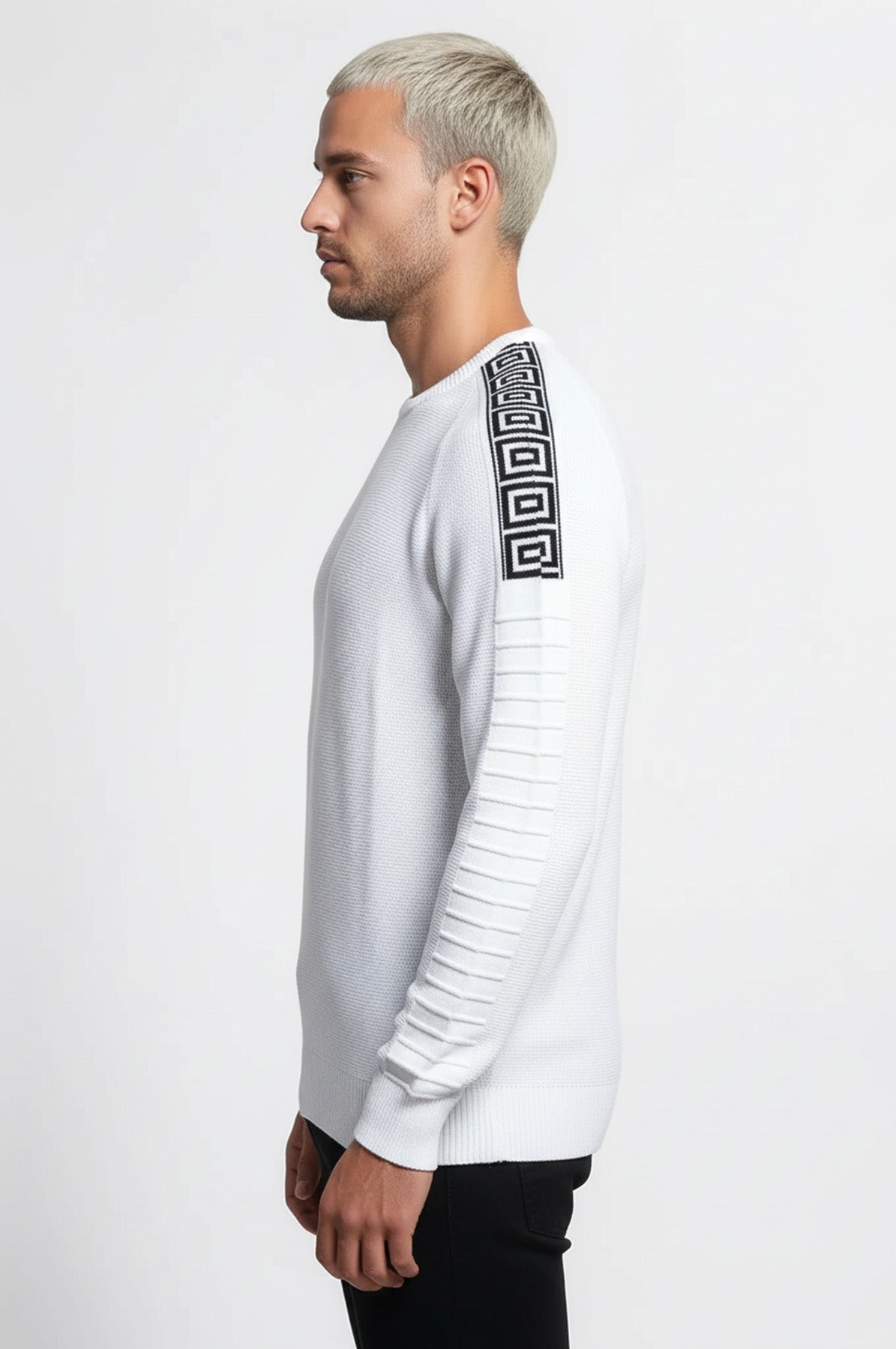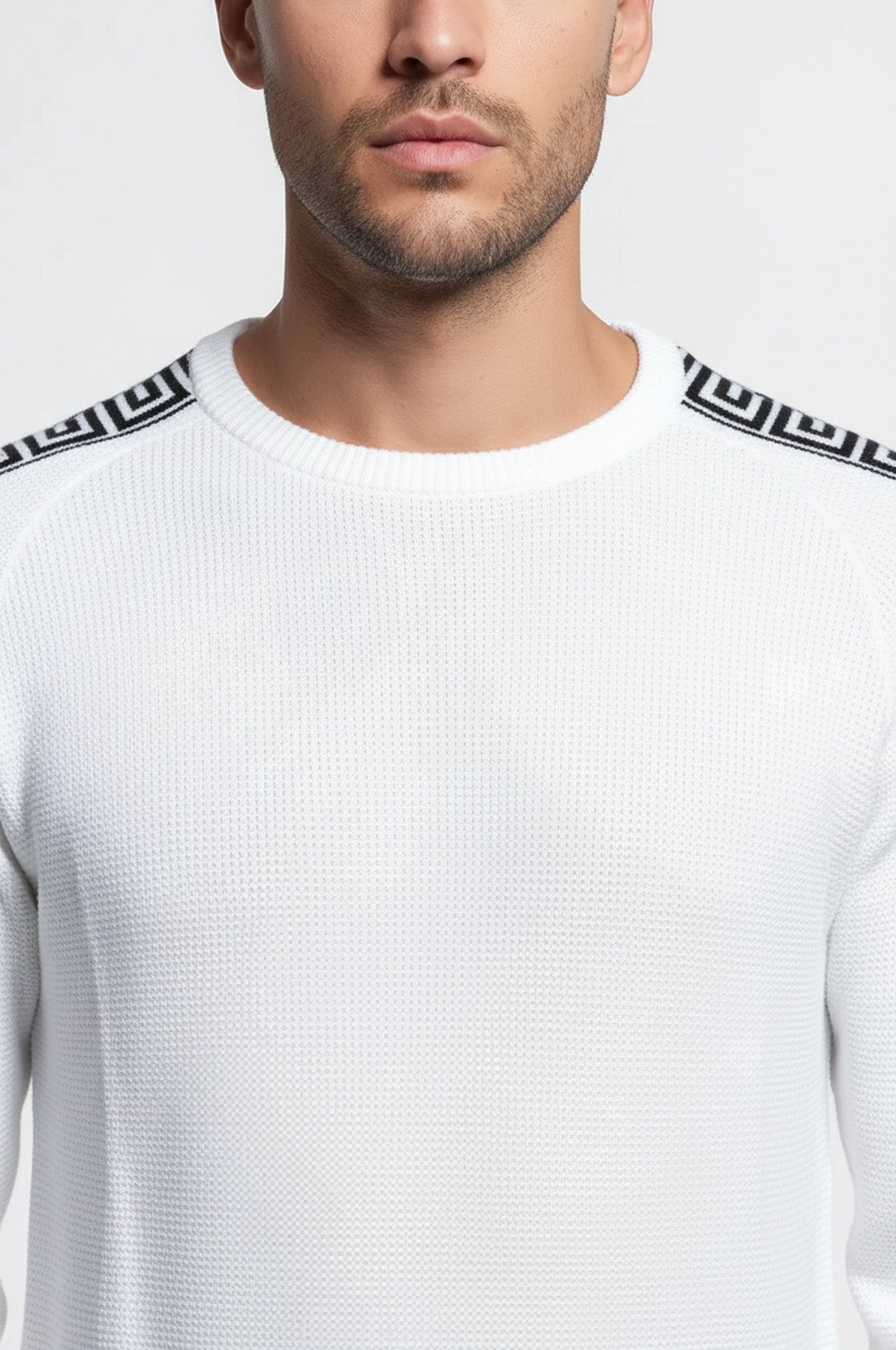 Wessi'nin ustaca tasarlanmış Beyaz Omuz Detaylı Bisiklet Yaka Triko, modern tasarımı en üst düzeyde konforla birleştiriyor. Temiz beyaz bir zemin üzerine yerleştirilmiş benzersiz bir kol deseni ile dikkat çeken bu triko, herhangi bir durum için mükemmeldir. Yüksek kaliteli malzemelerle üretilmiş olan bu triko, hem stil hem de sıcaklık sağlar. Gardırobunuzu bu çok yönlü parça ile güncelleyin.