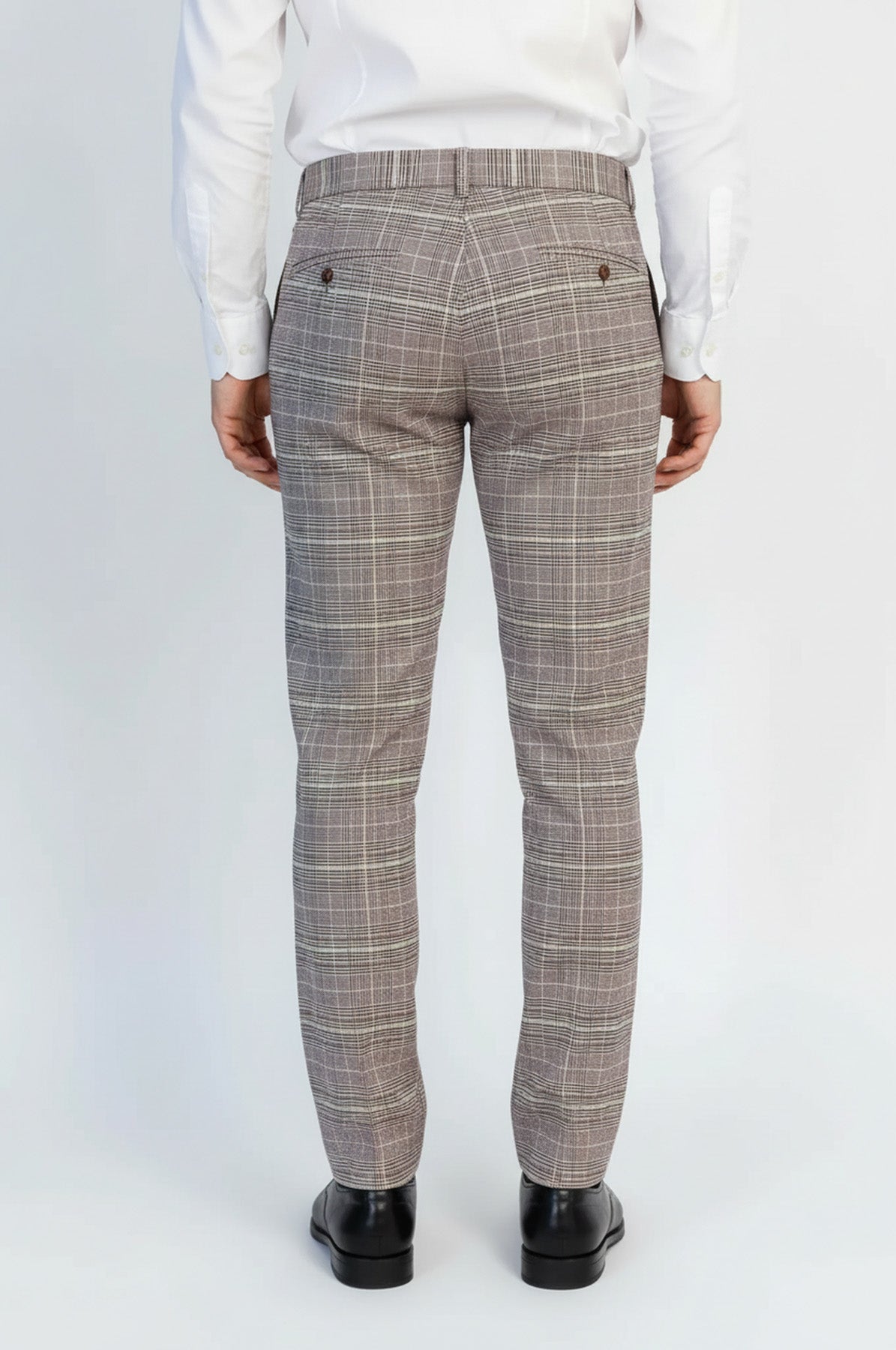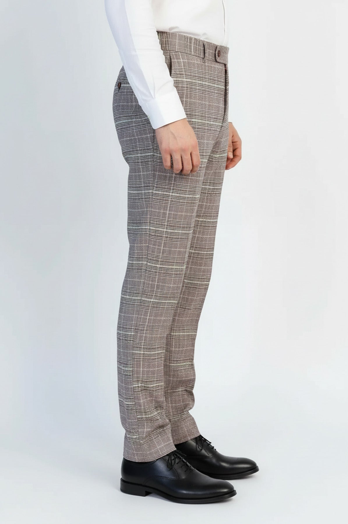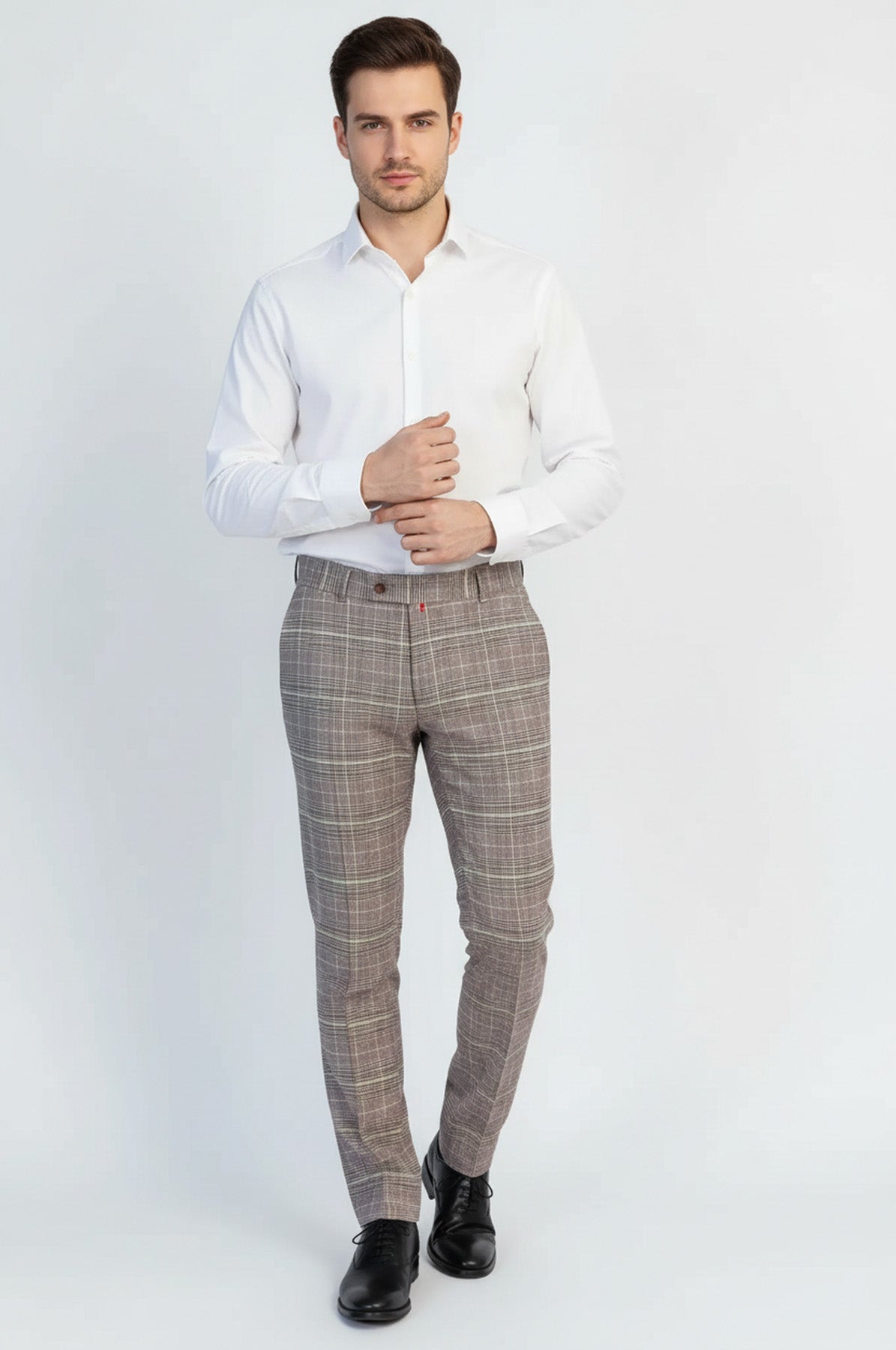 Kareli Desen: Sade kahverengi pantolonlardan farklı, dinamik ve modern görünüm.