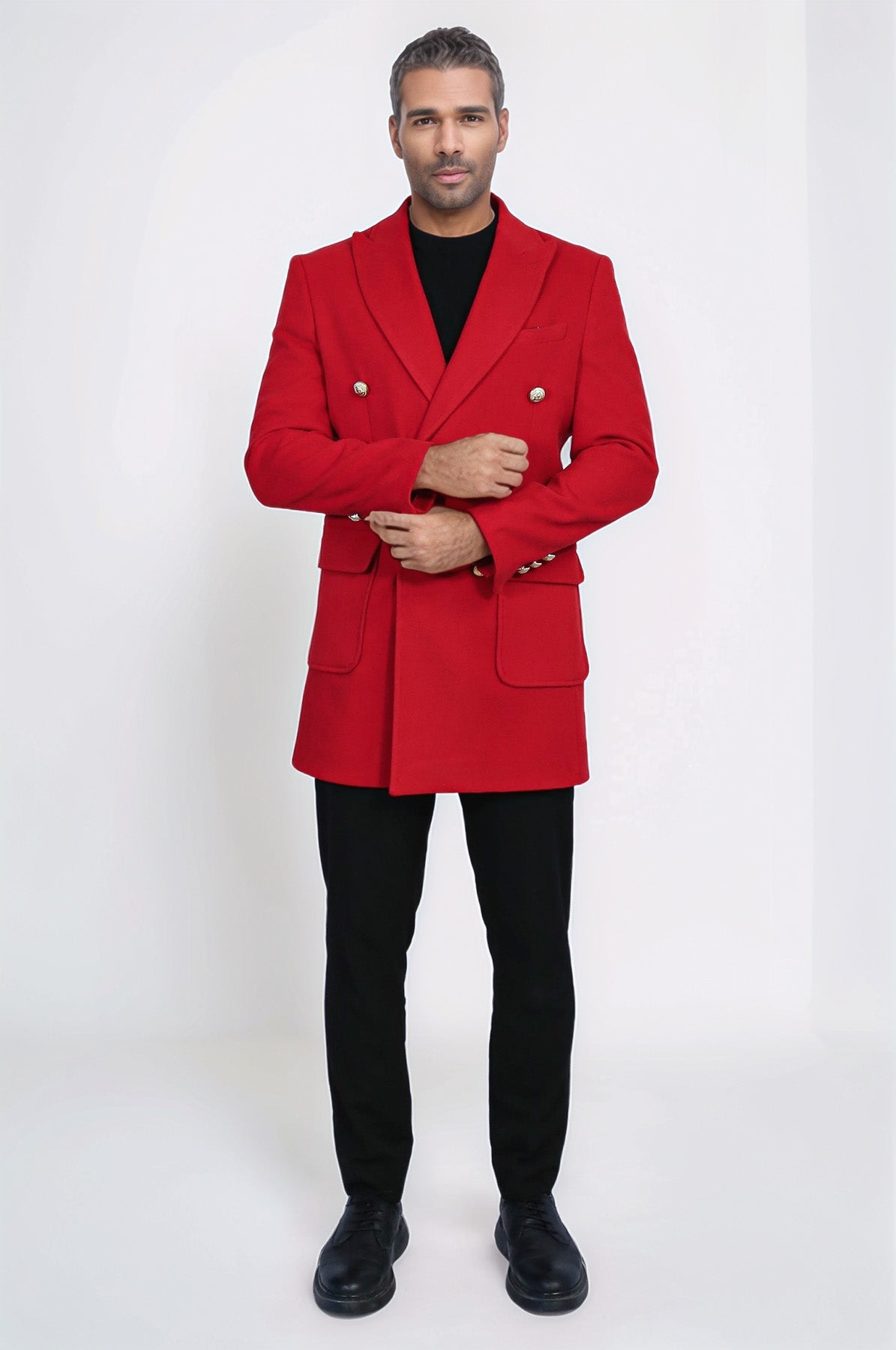 Bordo Metal Düğmeli Kruvaze Kaban - Wessi