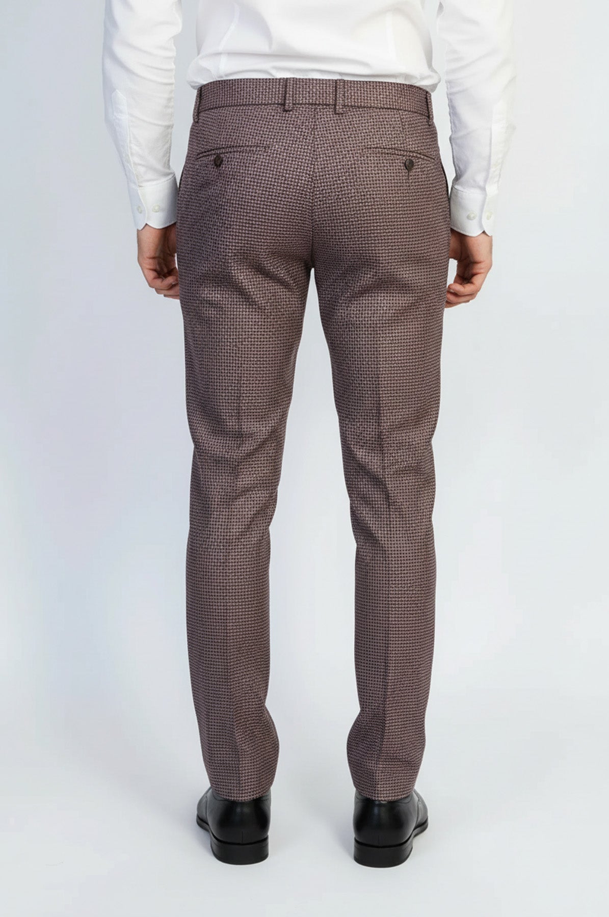 Bordo mikro desenli kumaş pantolon ile iş toplantılarından günlük şık kombinlere kadar her ortamda rahat ve modern görünün. Mikro desen detayı ve slim fit kesimiyle sofistike bir pantolon.