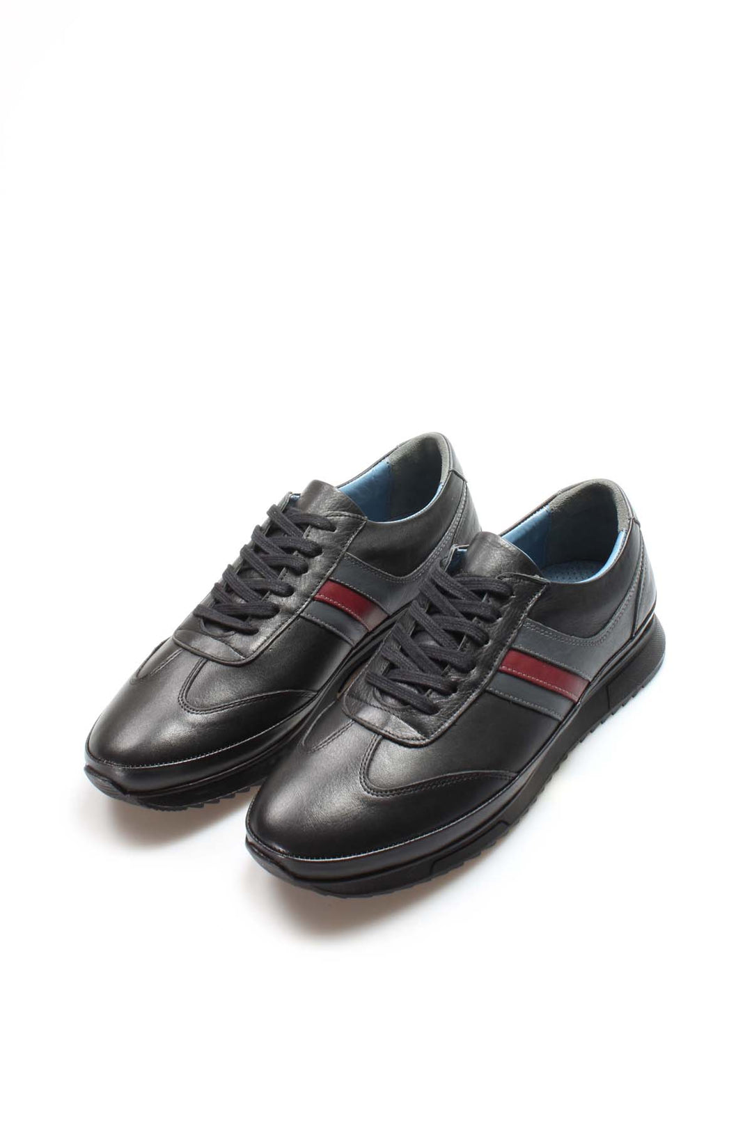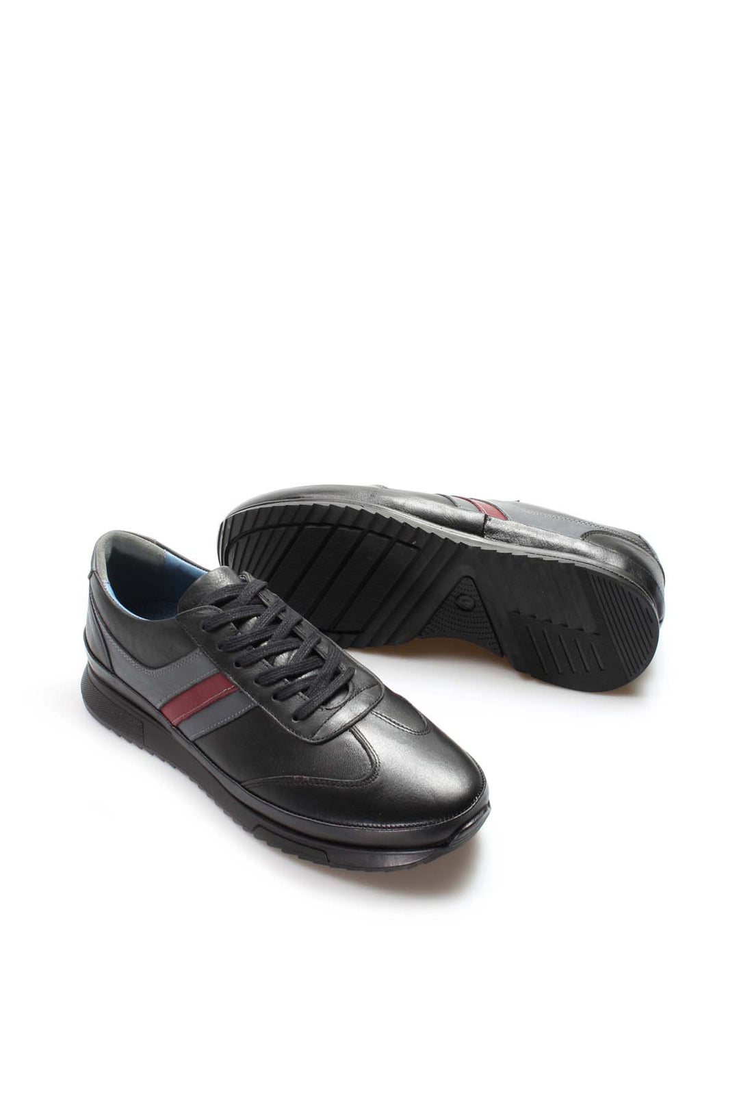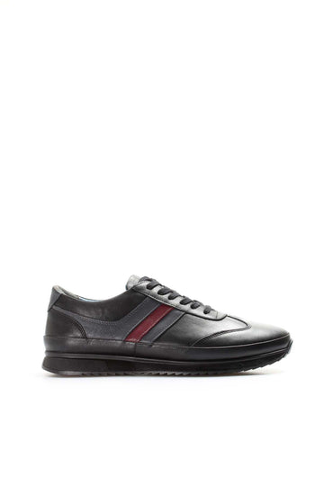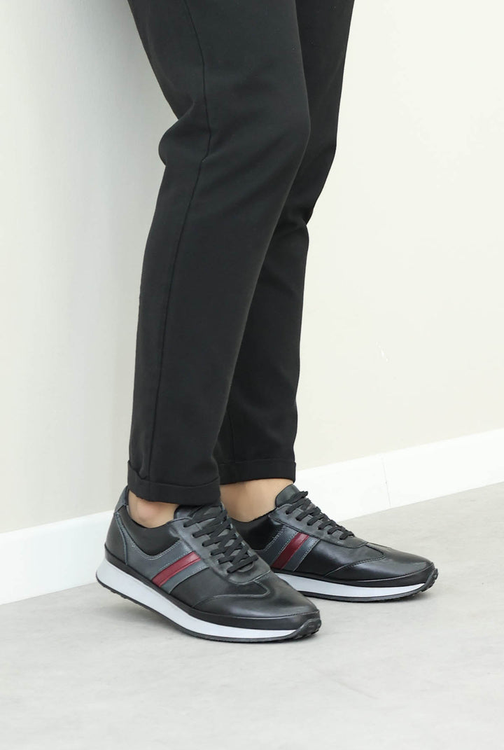 Bordo Şeritli Koyu Kahverengi Deri Erkek Spor Ayakkabı - Wessi