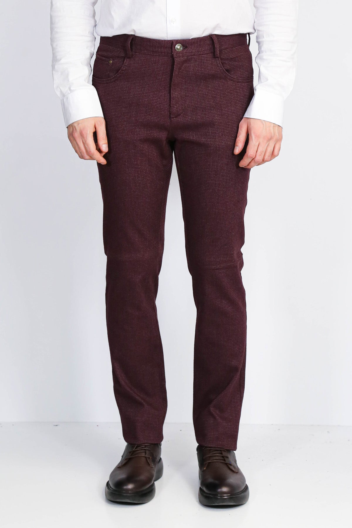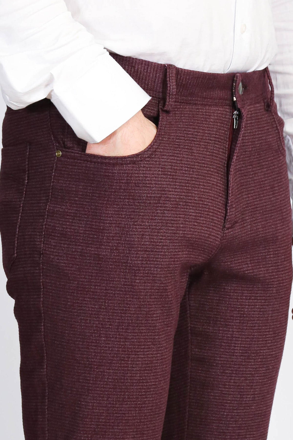 Mikro Desen: Sade bordo pantolonlardan farklı, dinamik ve modern görünüm.
