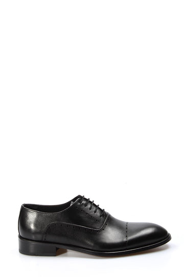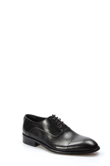 Brogue Detaylı Siyah Deri Erkek Oxford Ayakkabı - Wessi