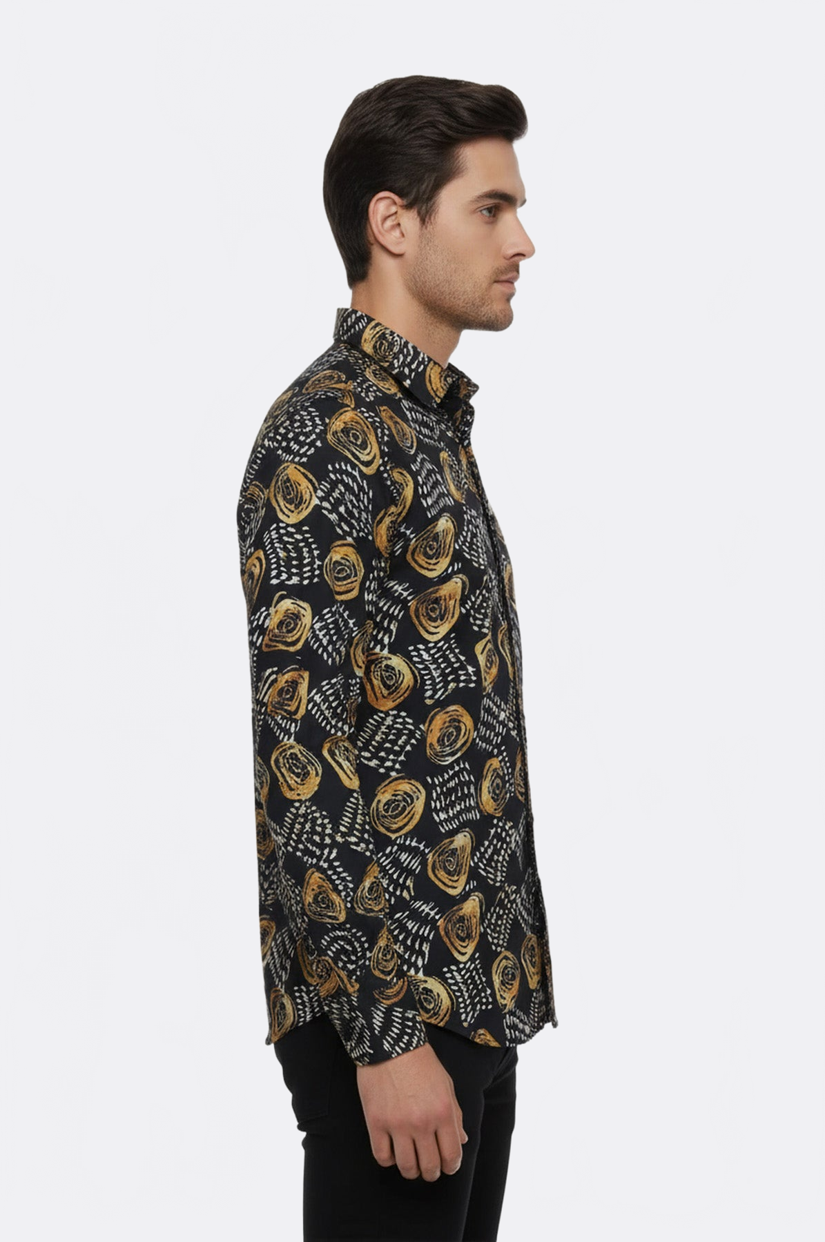 Çiçek Desenli Slim Fit Uzun Kollu Siyah Erkek Gömlek - Wessi