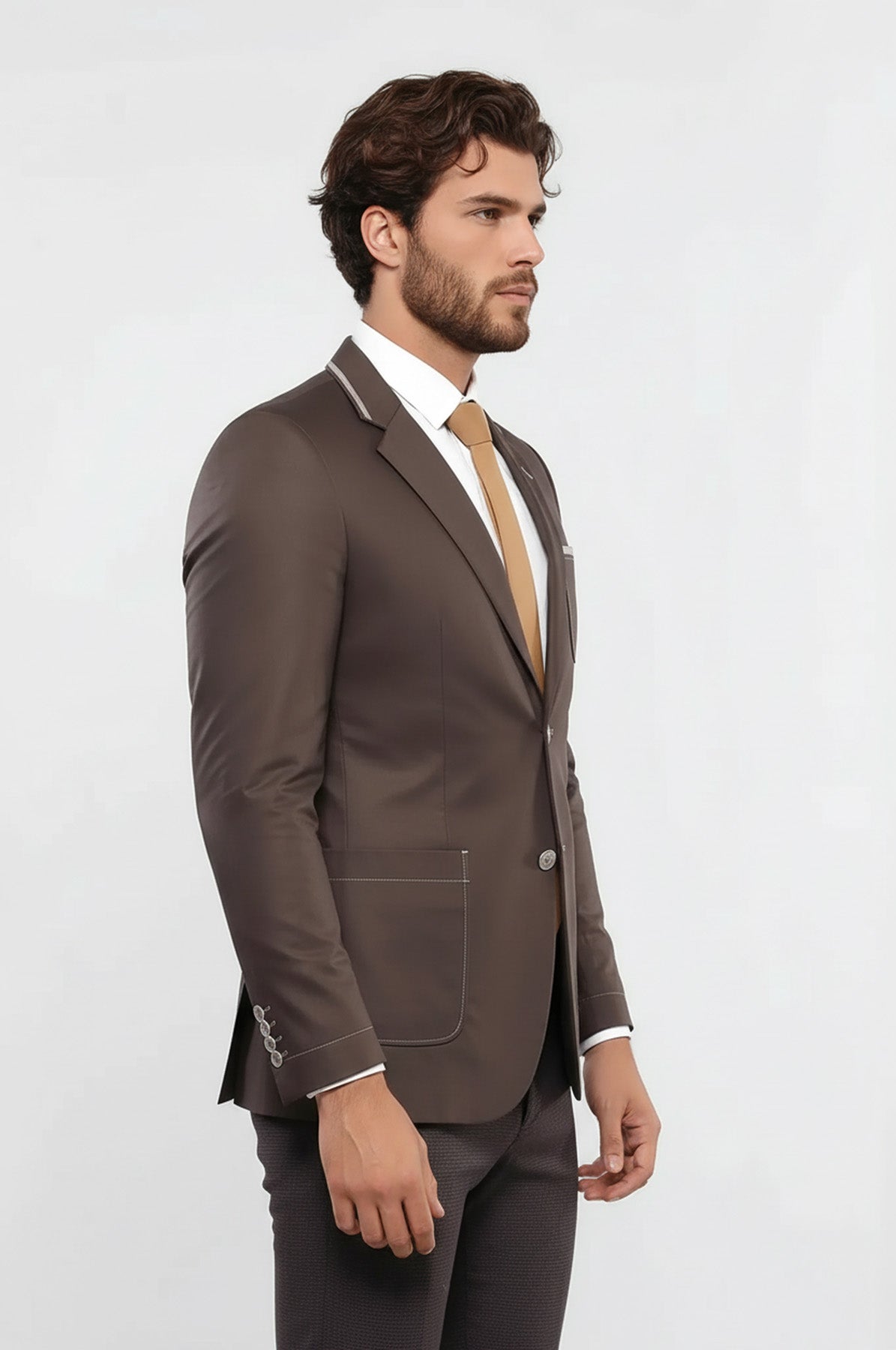 Çift Düğmeli Cepli Erkek Kahverengi Ceket- Wessi