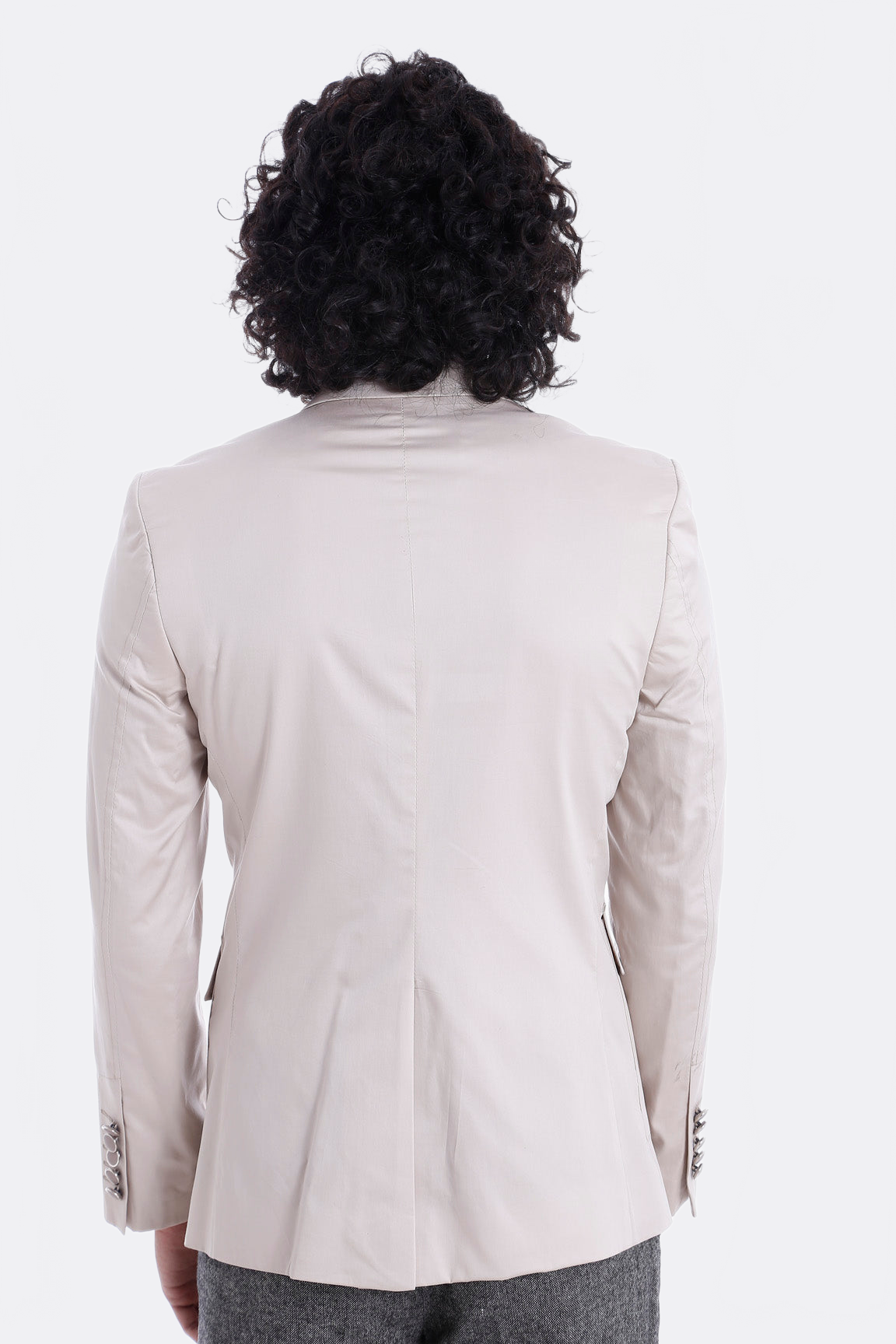 Çift Düğmeli Cepli Omuz Detaylı Krem Erkek Ceket - Wessi
