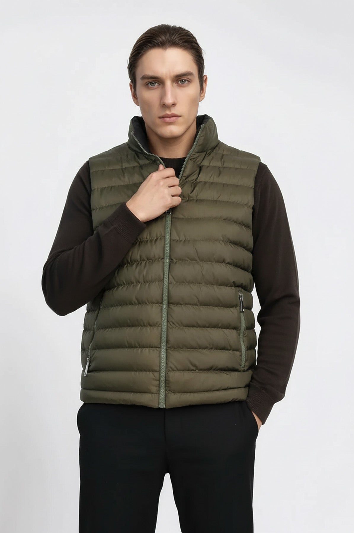 Çift Taraflı Kapitone Şişme Dik Yaka Yeşil Erkek Kışlık Yelek - Wessi