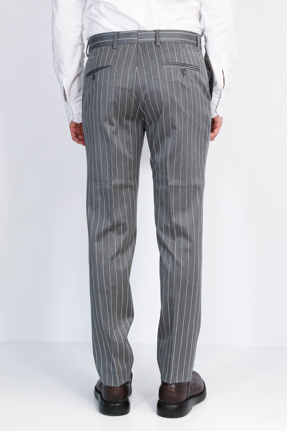 Çizgi Desen Gri Erkek Kumaş Pantolon - Wessi