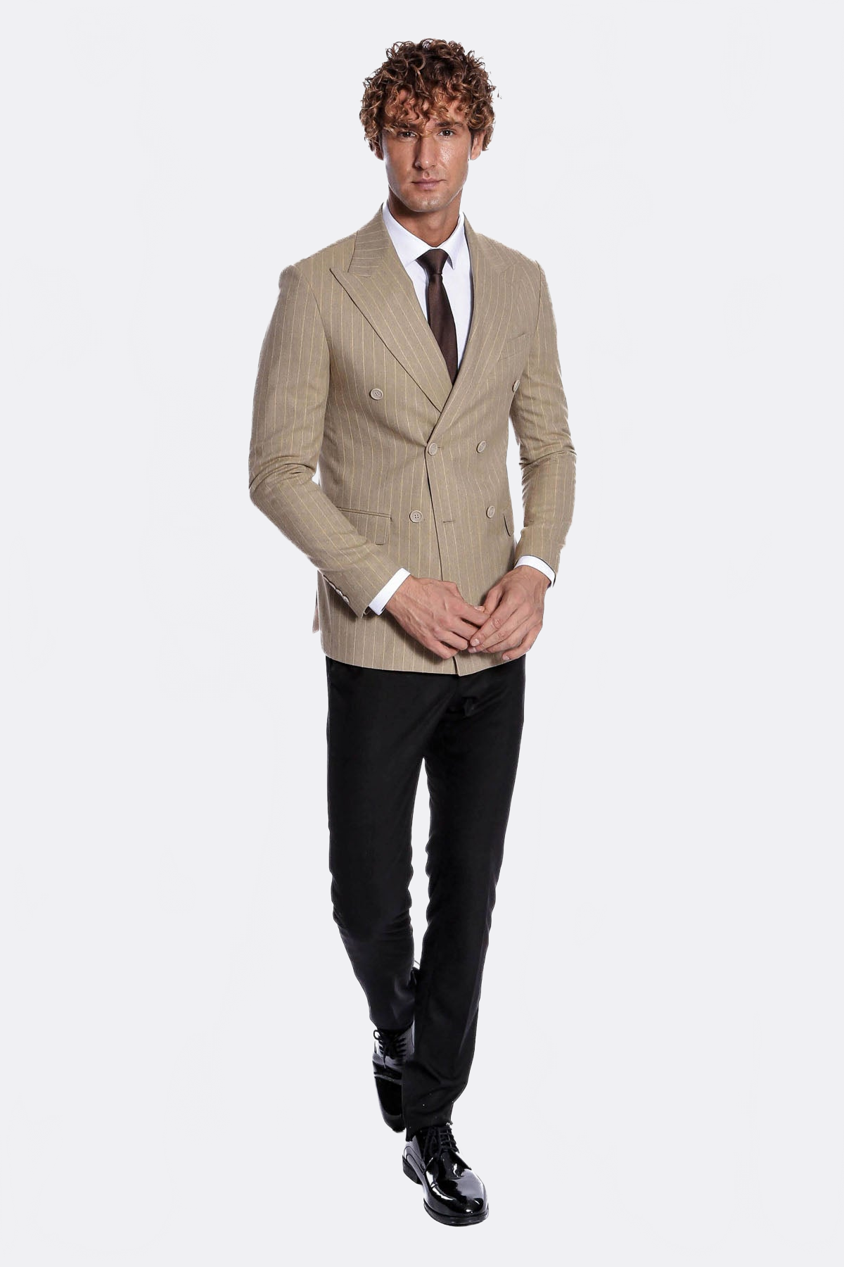 Çizgili Kruvaze Krem Erkek Ceket - Wessi