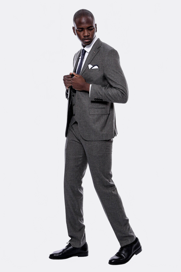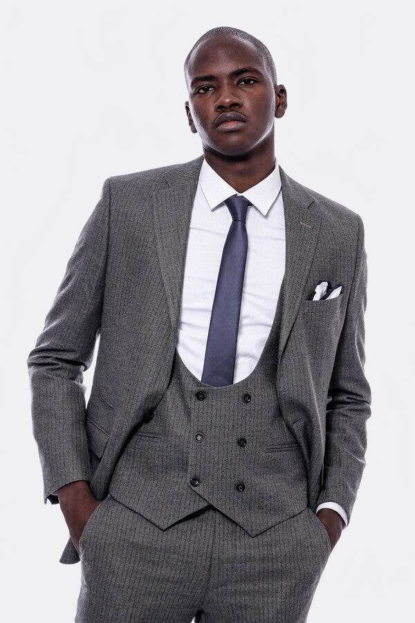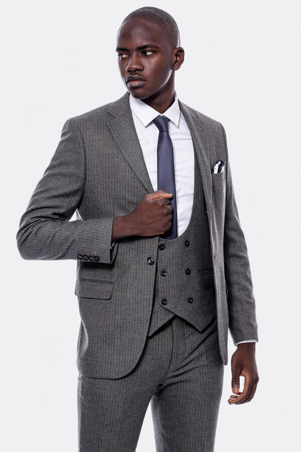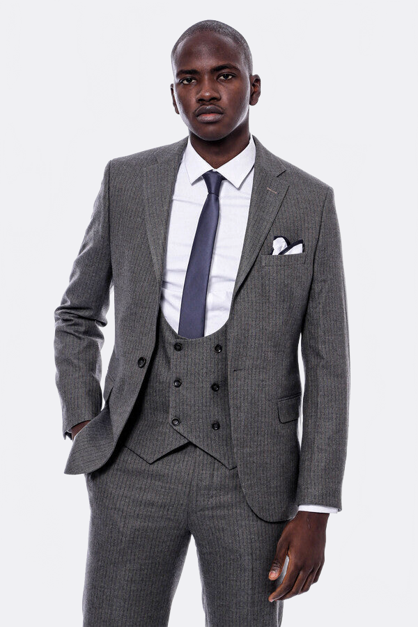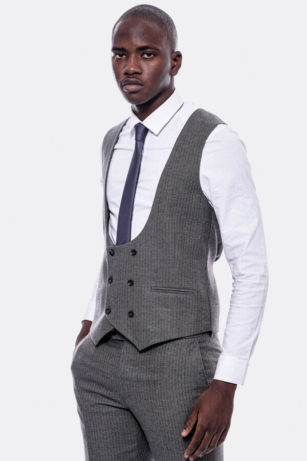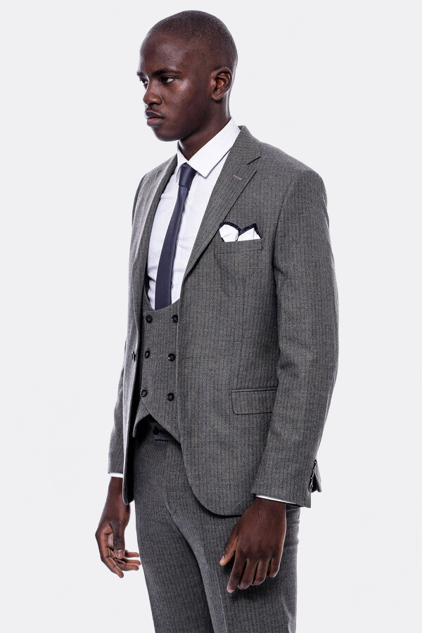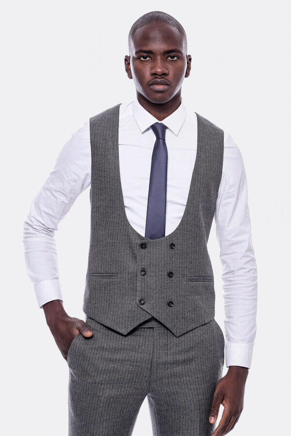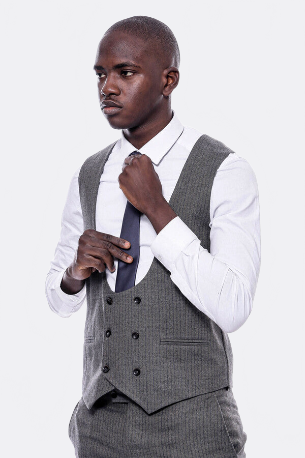 Çizgili Kruvaze Yelekli Slim Fit Takım Elbise - Wessi