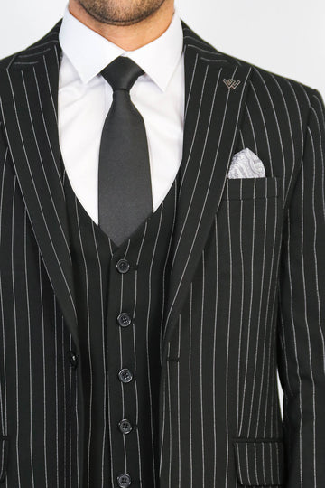 Çizgili Tek Düğmeli Yelekli Siyah Erkek Takım Elbise - Wessi