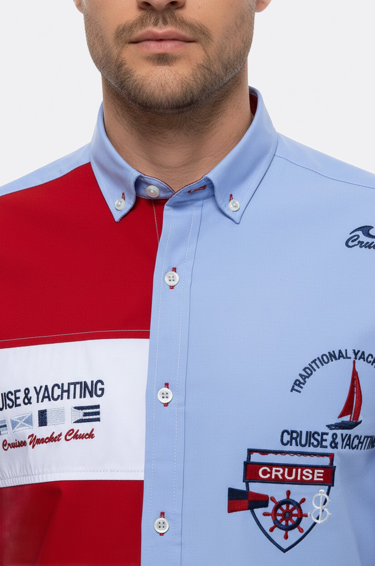 Cruise Yachting Armalı Açık Mavi-Kırmızı Gömlek - Wessi
