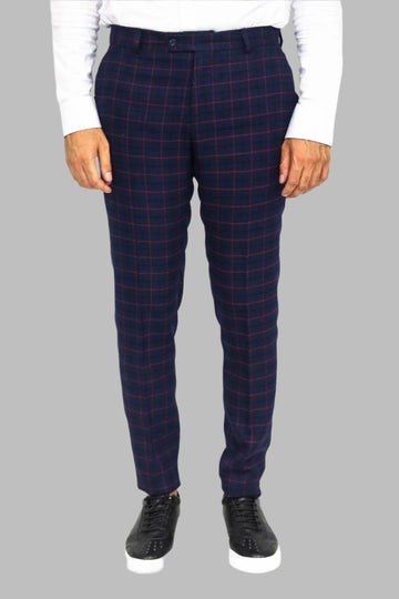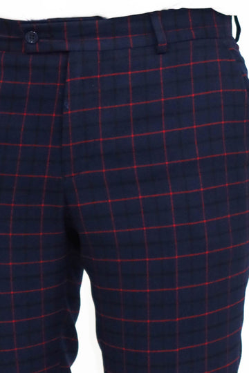 Dar Kesim Ekose Desenli Lacivert Erkek Pantolon - Wessi