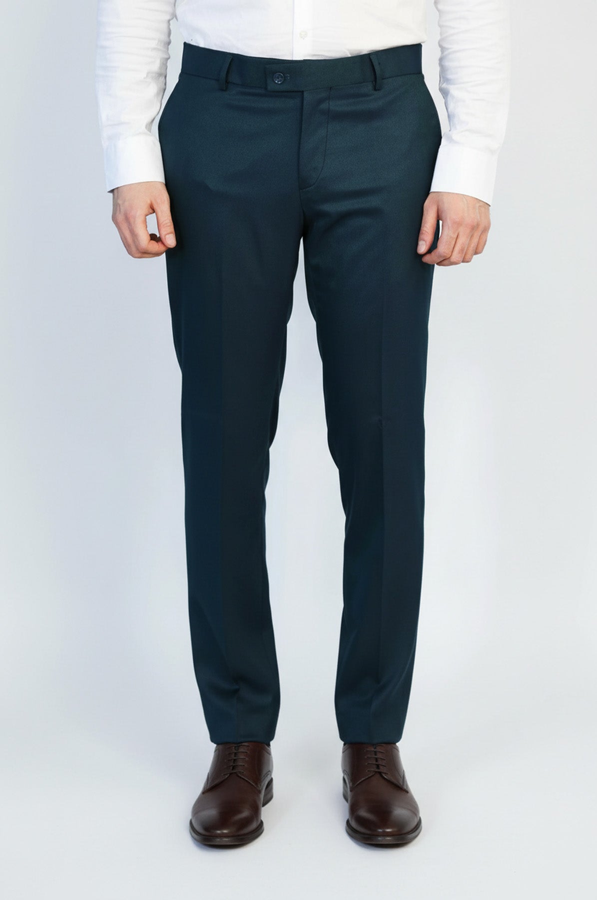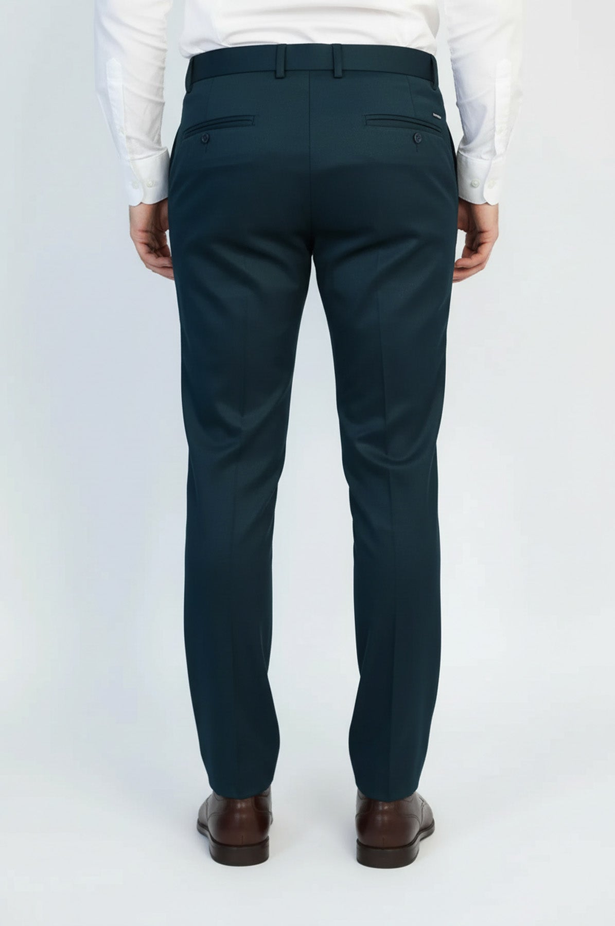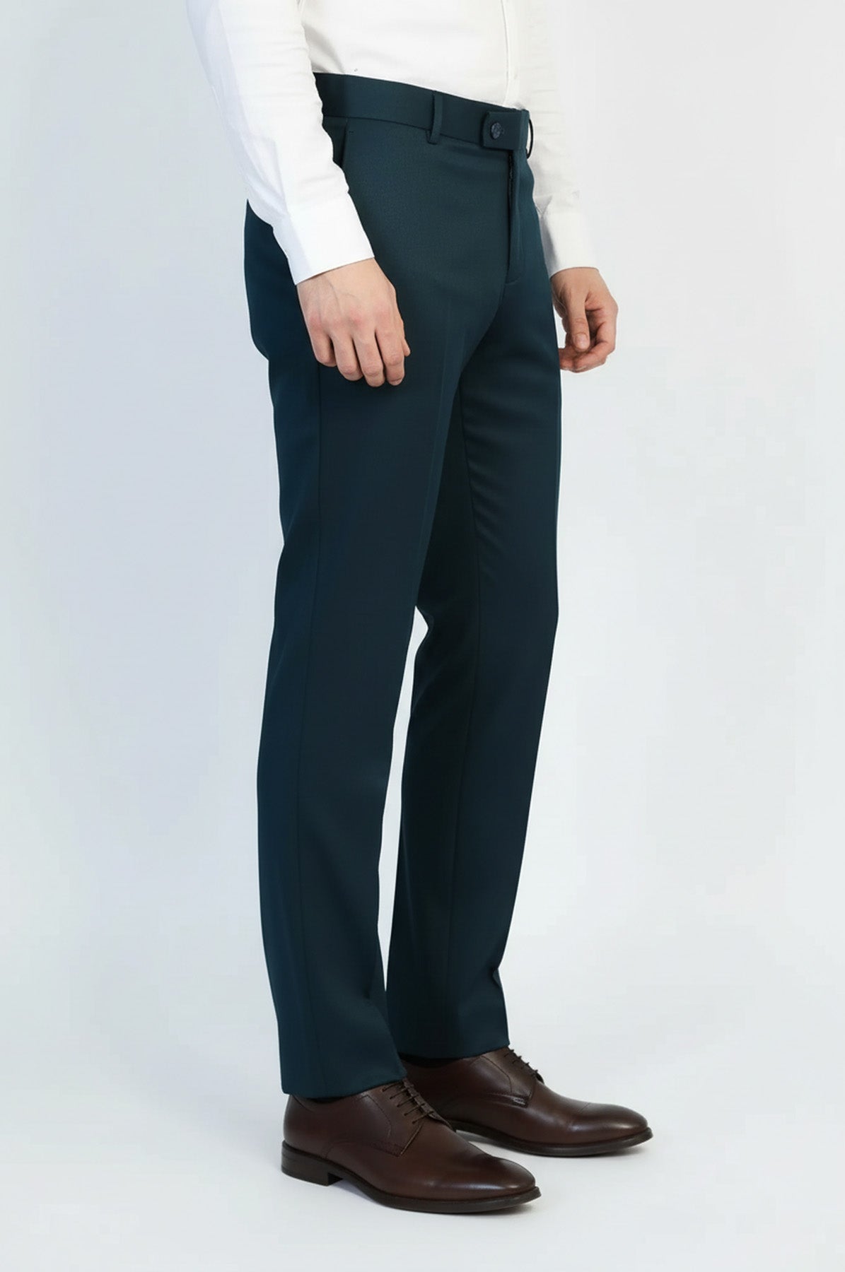 Dar Kesim Kendinden Desenli Petrol Yeşil Erkek Kumaş Pantolon - Wessi