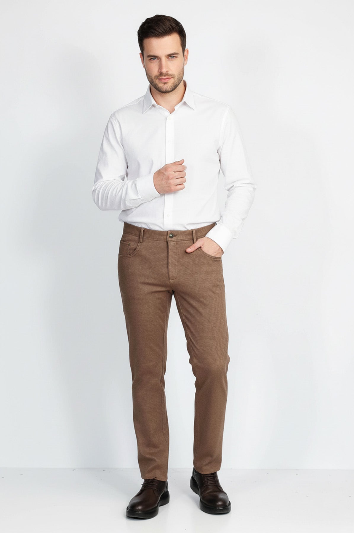 Dar Kesim Pamuk Açık Kahverengi Erkek Pantolon - Wessi