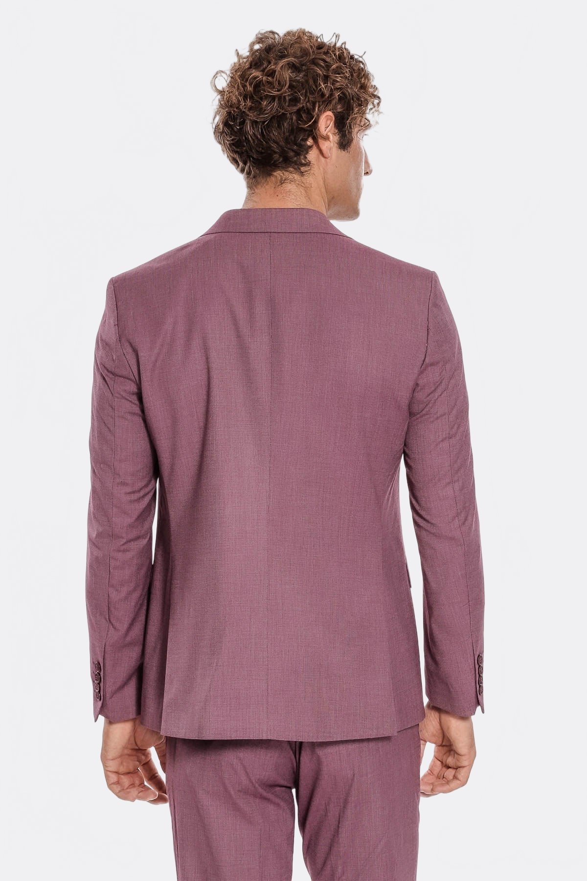 Mor desenli takım elbise ile özel günlerde farklı ve şık görünün. Desenli kumaş ve slim fit kesimiyle modern bir takım.