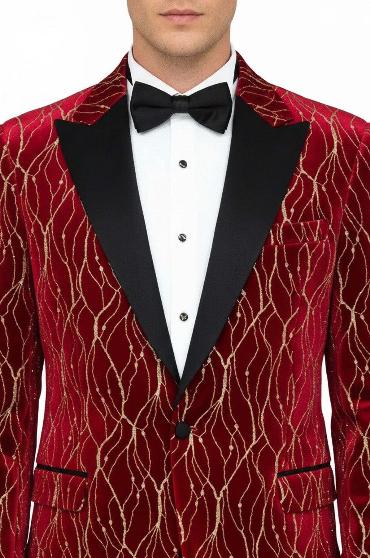 Desenli Koyu Kırmızı Erkek Smokin Ceket - Wessi