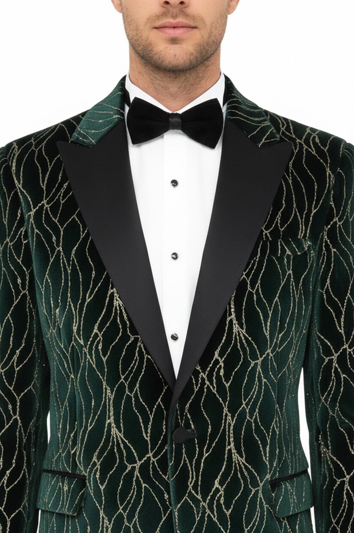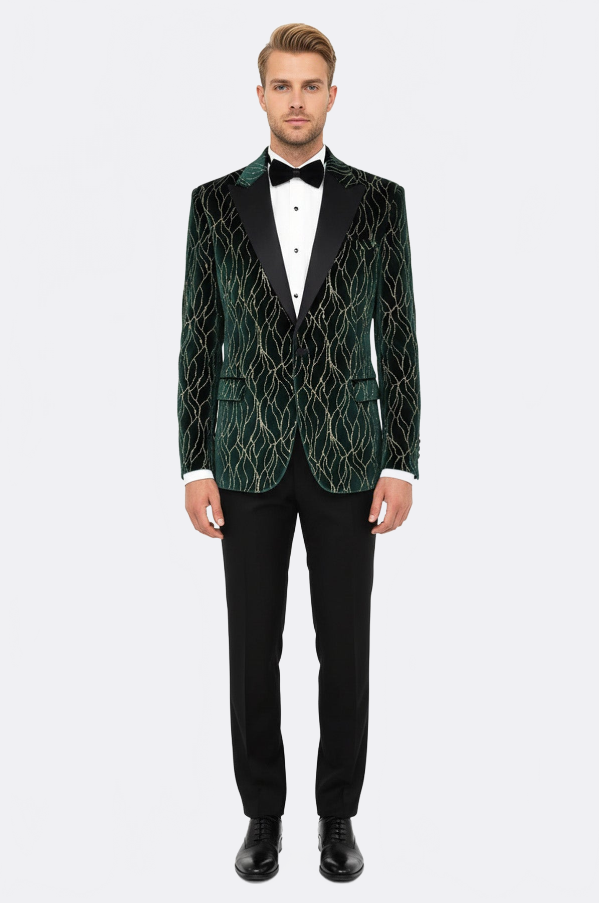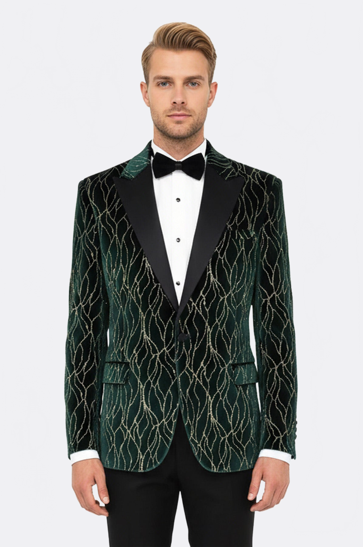 Desenli Koyu Yeşil Erkek Smokin Ceket - Wessi