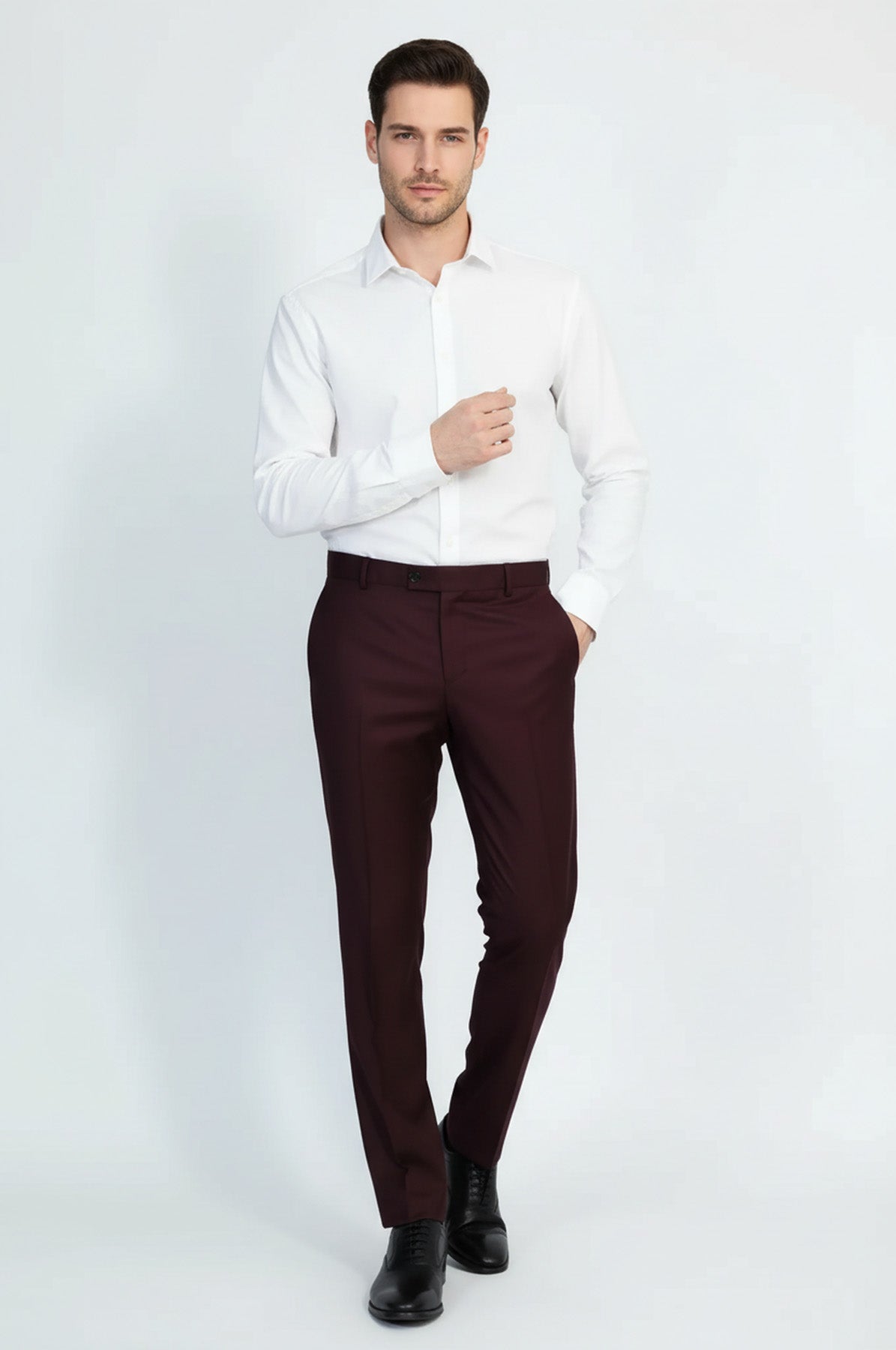 Desensiz Bordo Erkek Kumaş Pantolon - Wessi