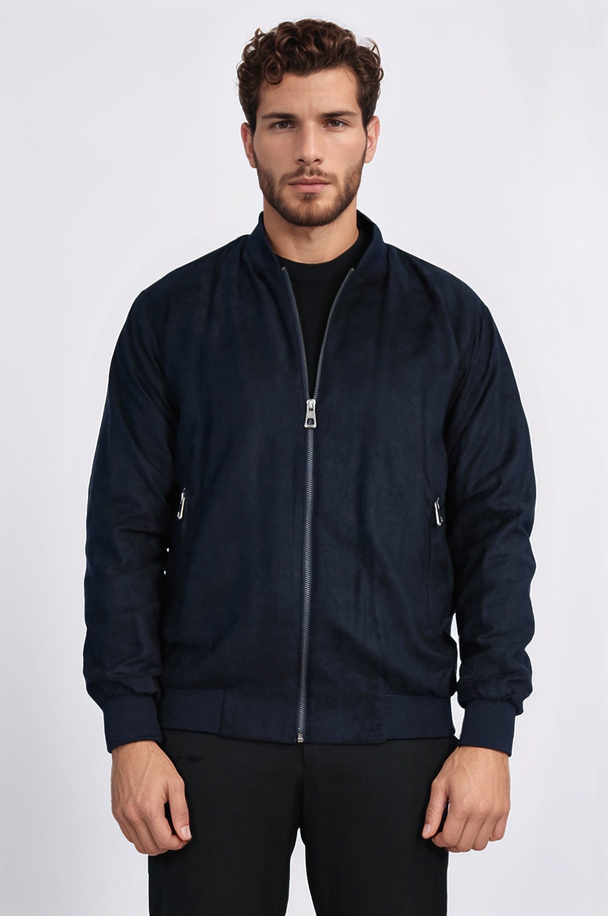 Desensiz Fermuarlı Cepli Lacivert Erkek Bomber Ceket - Wessi