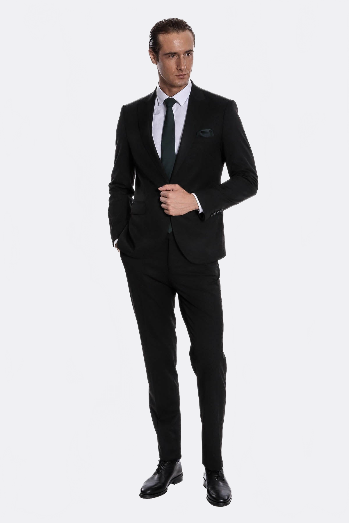 Desensiz İki Parça Slim Fit Siyah Erkek Takım Elbise - Wessi
