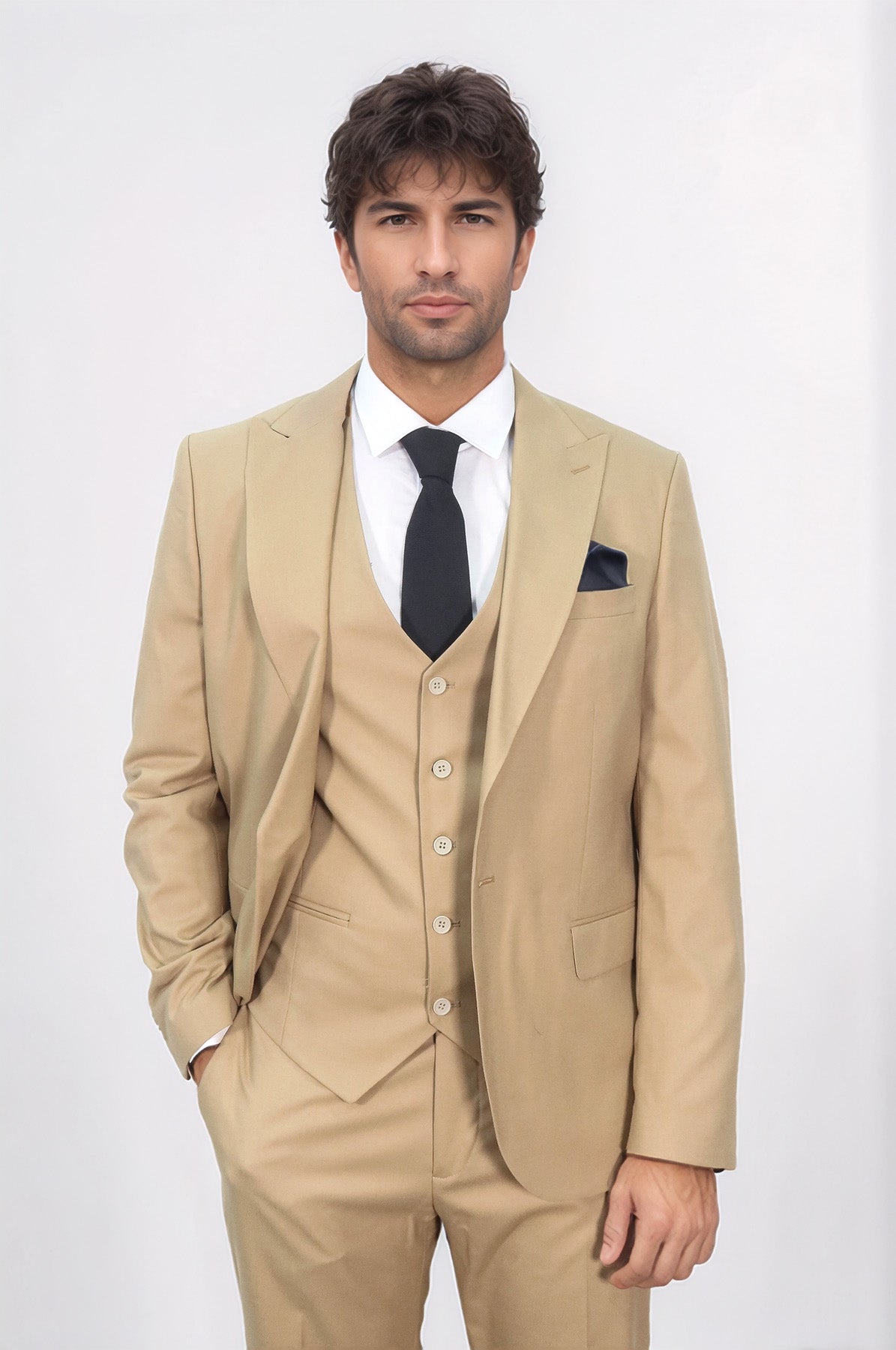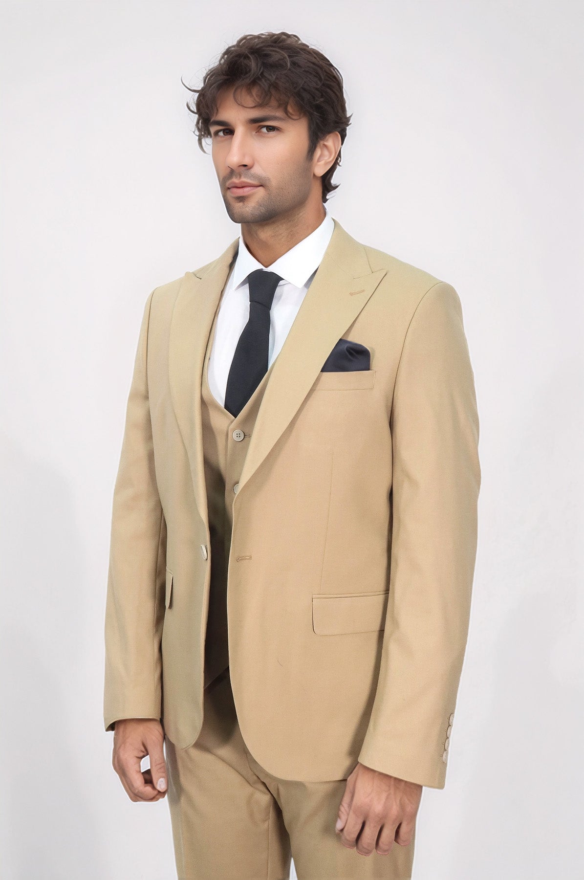 Desensiz Slim Fit Kum Rengi Erkek Takım Elbise - Wessi