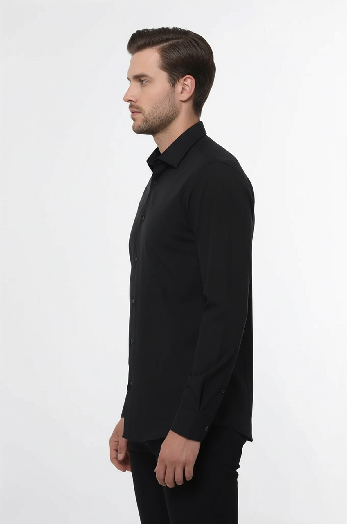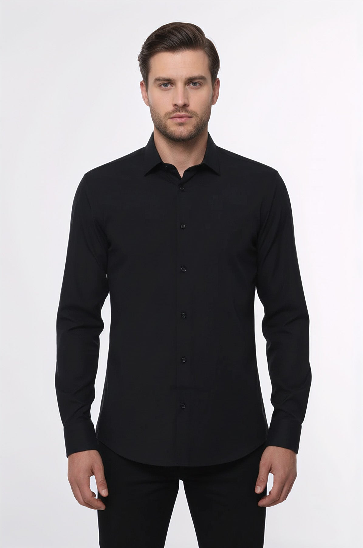 Düz Uzun Kol Regular Fit Siyah Erkek Gömlek - Wessi