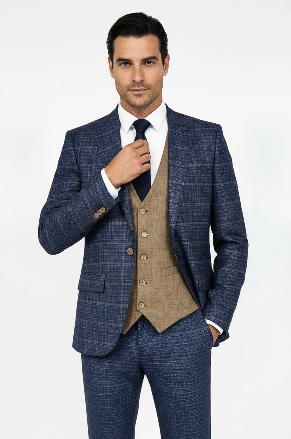 Renk : Bej Yelek, Lacivert Ceket & Pantolon