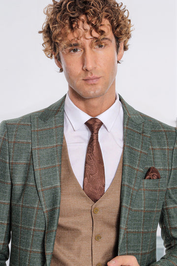 Ekose Ceketli Slim Fit Yeşil Erkek Takım Elbise - Wessi