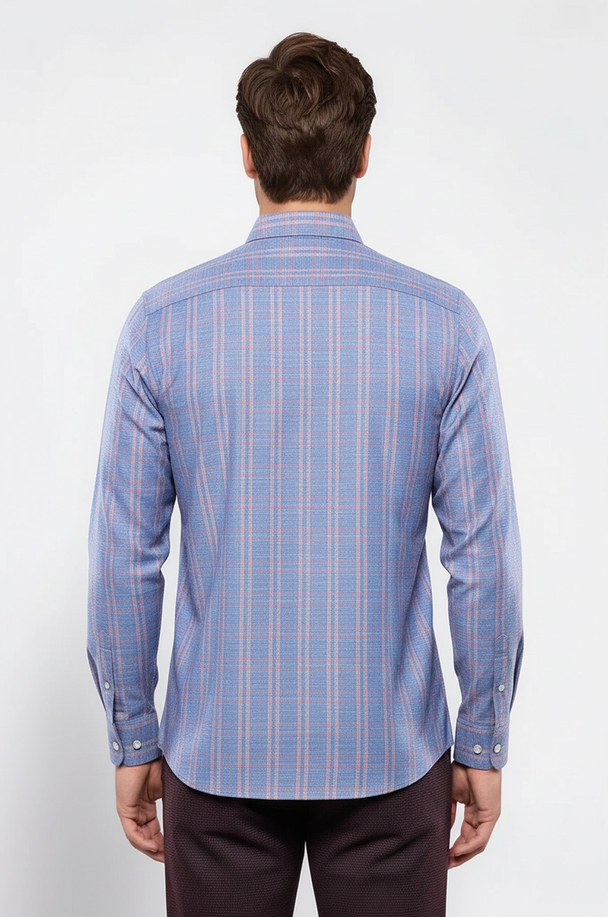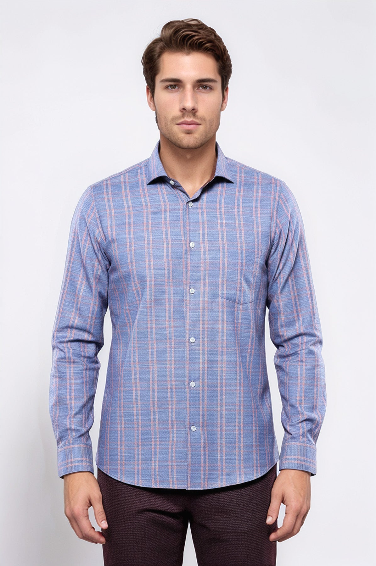 Ekose Desen Mavi Uzun Kollu Gömlek | Wessi