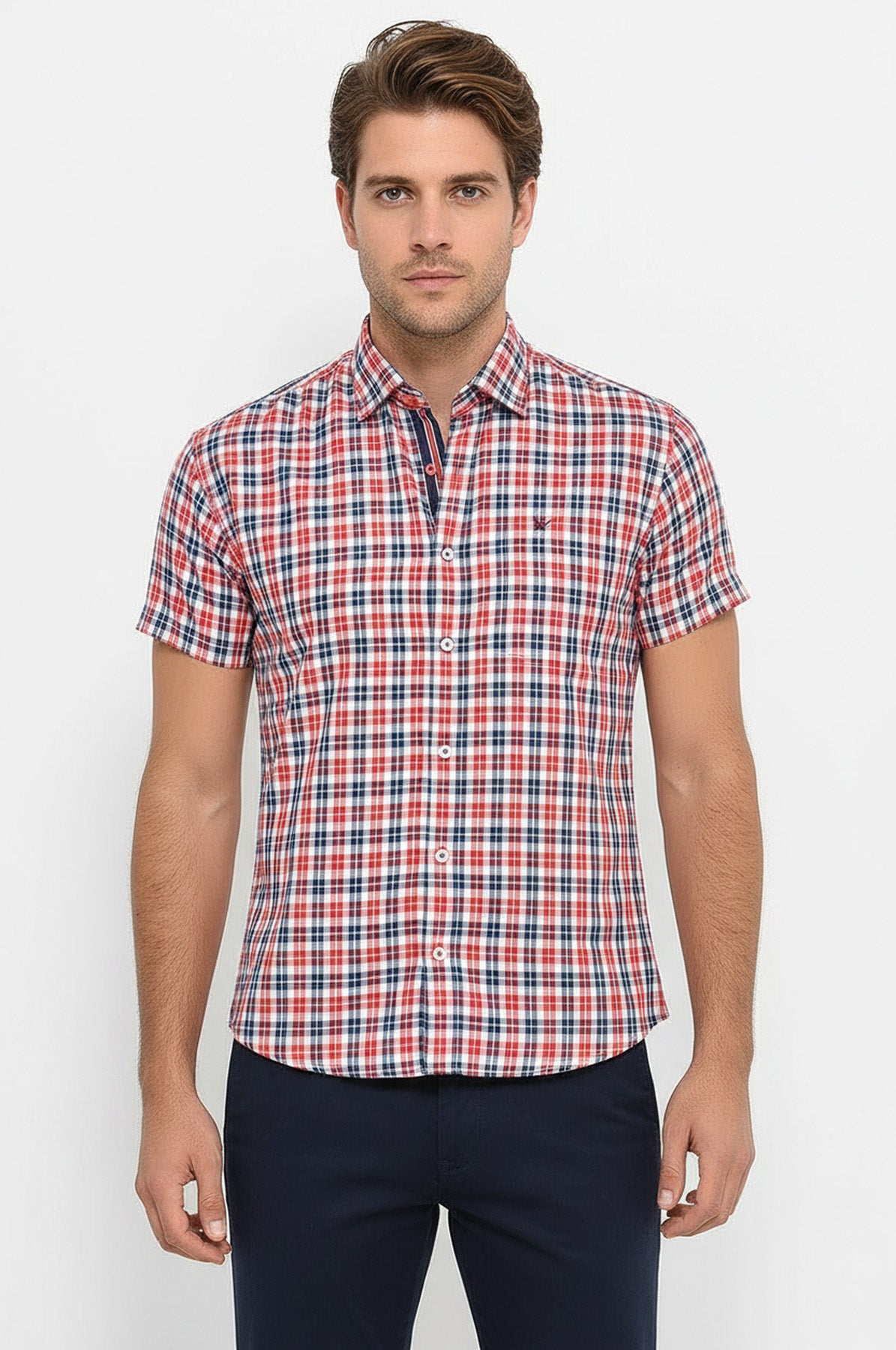 Ekose Desenli Kısa Kollu Lacivert Erkek Gömlek - Wessi
