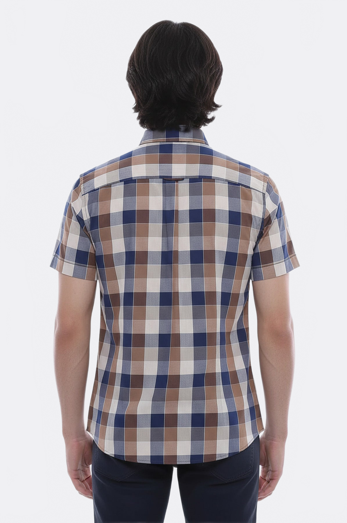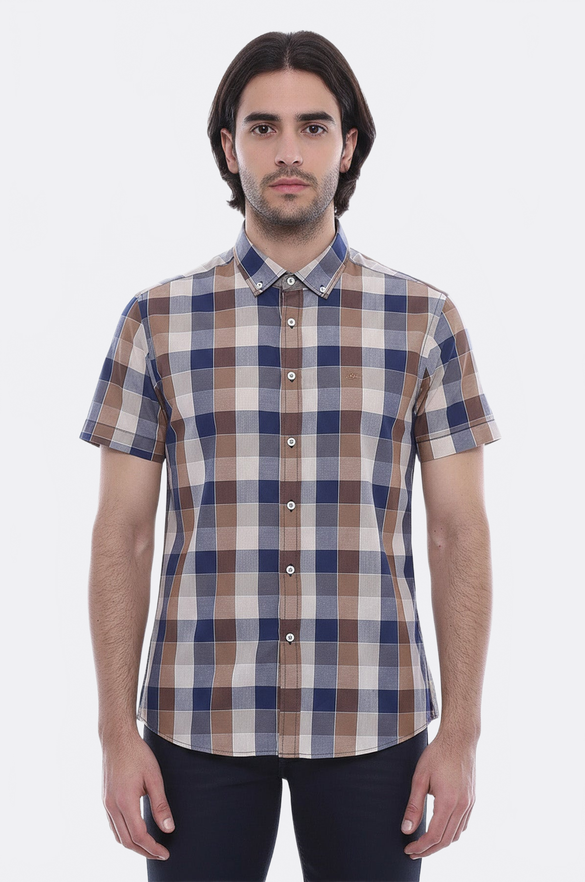 Ekose Desenli Pamuk Kahverengi Erkek Gömlek - Wessi