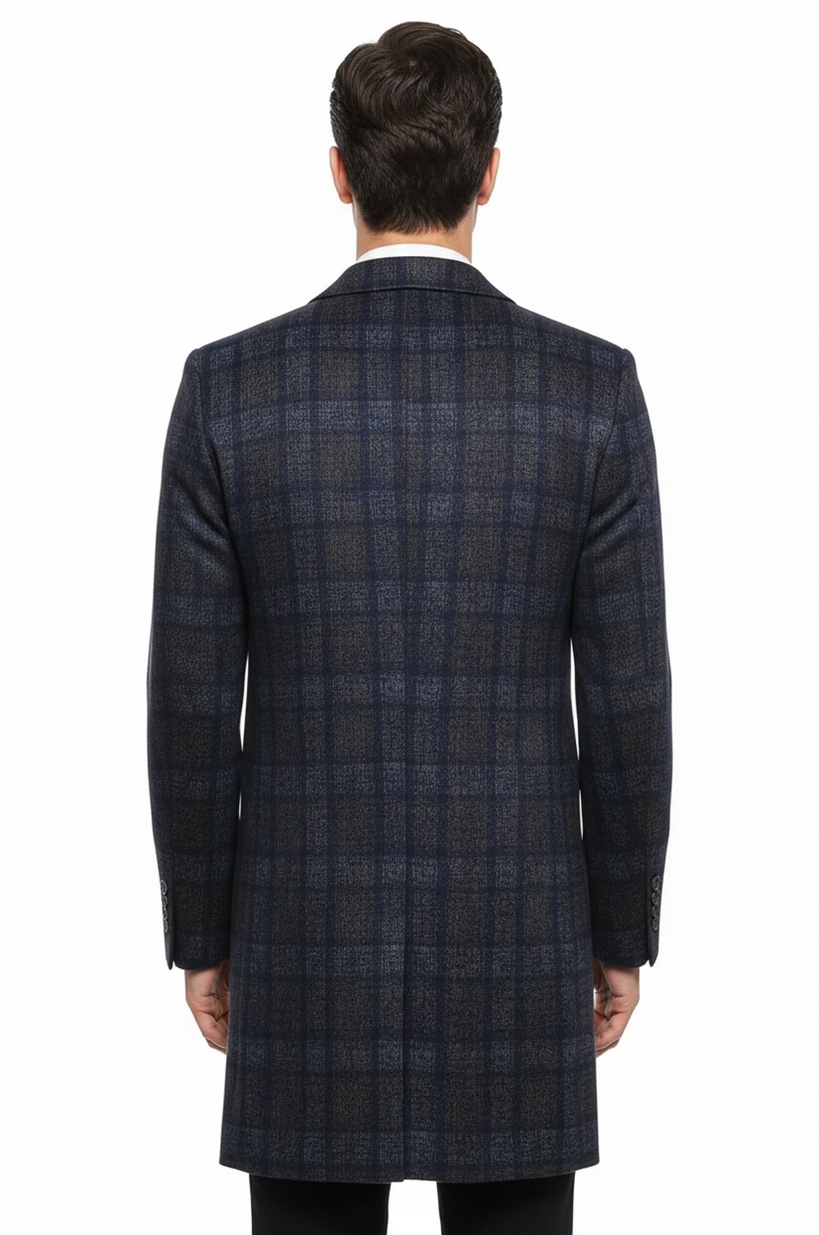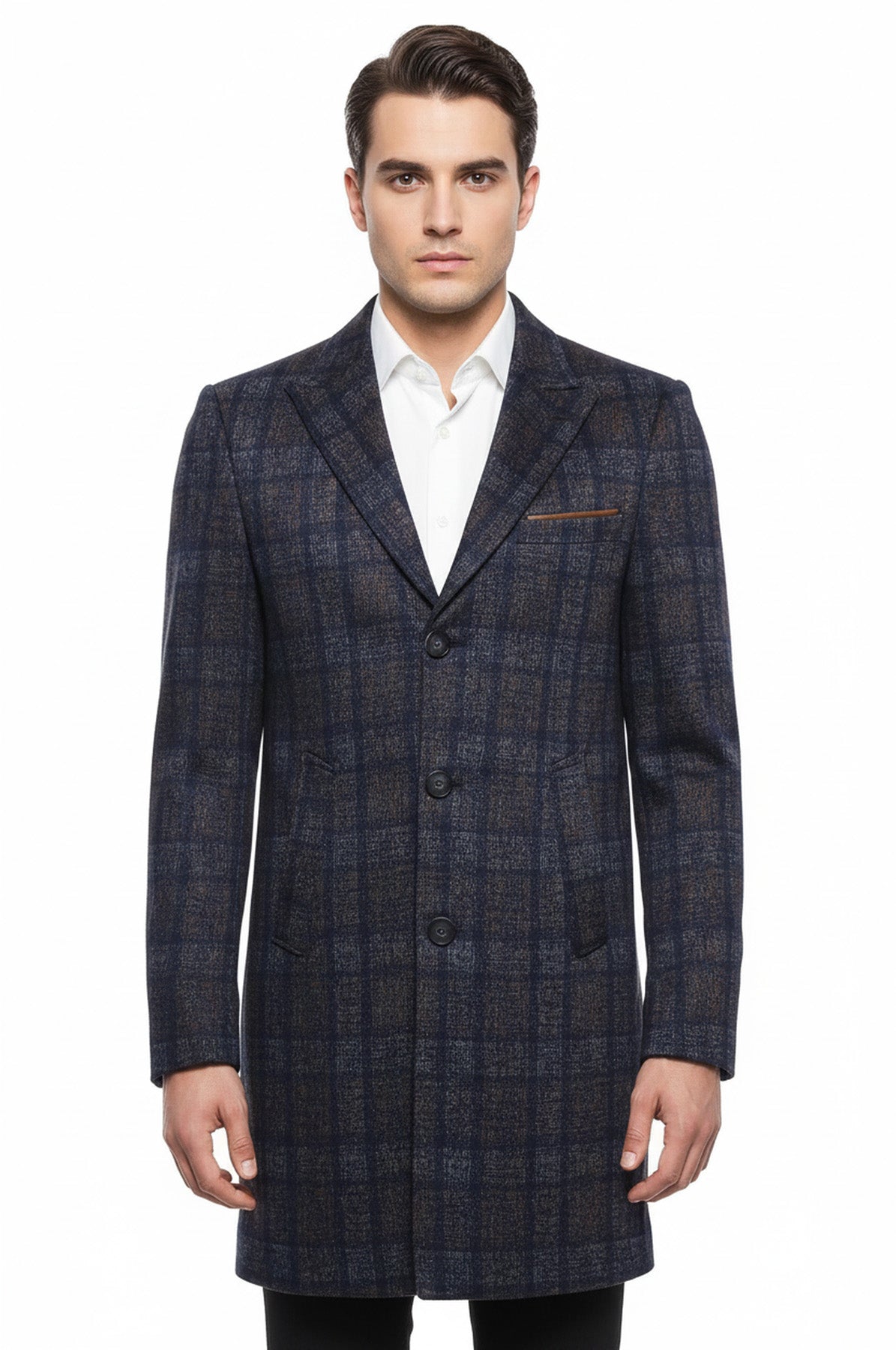 Erkek klasik giyim parçalarının en sevilenlerinden olan palto modellerini de markamızın ürünleri içerisinde bulabilmeniz mümkün olmaktadır. Füme rengin kullanıldığı bu modelimizde ayrıca koyu mavi renkte çizgiler kullanılarak iri ekose deseni oluşturulmuştur. Üç düğme ile tasarlanan palto aynı zamanda sivri geniş yakalara da sahip olmaktadır. Modele renk katmak ve canlandırmak adına ise yaka cebi tasarlanarak erkeklerin cep mendili kullanmalarına olanak tanınmıştır.