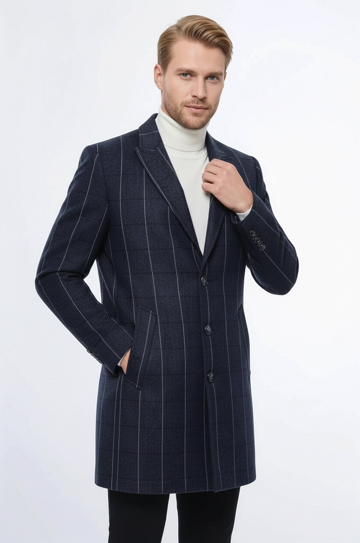 Erkek paltoları, zarif ve sofistike bir görünüm elde etmenin anahtarıdır. Farklı kesimler, uzunluklar ve kumaşlarla sunulan bu paltolar, her tarza ve özel etkinliğe uygun seçenekler sunarak stilinizi tamamlar. Klasik ve sofistike bir tarzın temsilcisi olan bu lacivert erkek palto, ekose deseni ve geniş yaka tasarımı ile dikkat çekiyor. Üç düğmeli ve iki cepli yapısı, hem şıklığı hem de işlevselliği bir araya getirir. Bu palto, kış mevsiminin vazgeçilmez bir parçasıdır ve her kombini tamamlar. Bu lacivert paltoyu, beyaz bir gömlek ve koyu renkli bir kravat ile kombinleyerek şıklığınızı ön plana çıkarabilirsiniz. Altına gri veya siyah bir dar kesim pantolon tercih ederek kombini tamamlayabilirsiniz. Ayakkabı olarak siyah deri oxford ayakkabılar veya loaferlar kullanarak stilinizi vurgulayabilirsiniz. Soğuk hava koşullarına karşı ek koruma için lacivert renkte eldiven ve bere eklemeyi düşünebilirsiniz. Bu kombin, iş toplantılarından özel etkinliklere kadar birçok farklı durum için uygun olup, klasik bir şıklık sunar.