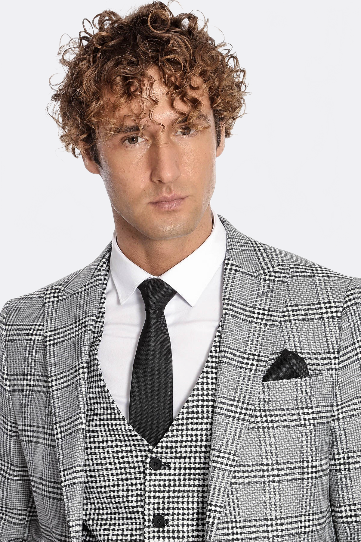 Ekose Yelekli Gri Erkek Takım Elbise - Wessi