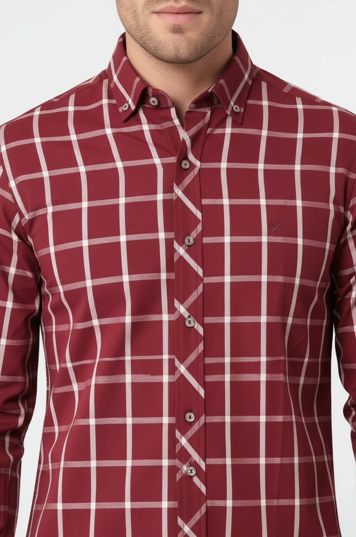 Ekoseli Slimfit Bordo Gömlek - Wessi
