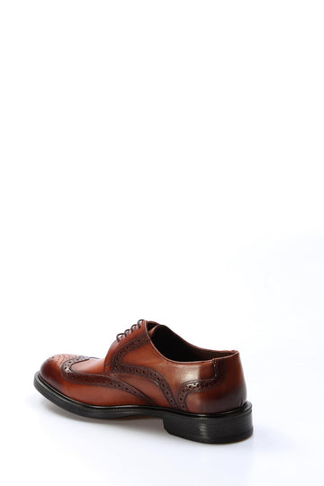 Erkek Kahverengi Deri Delikli Desenli Bağcıklı Ayakkabı - Wessi