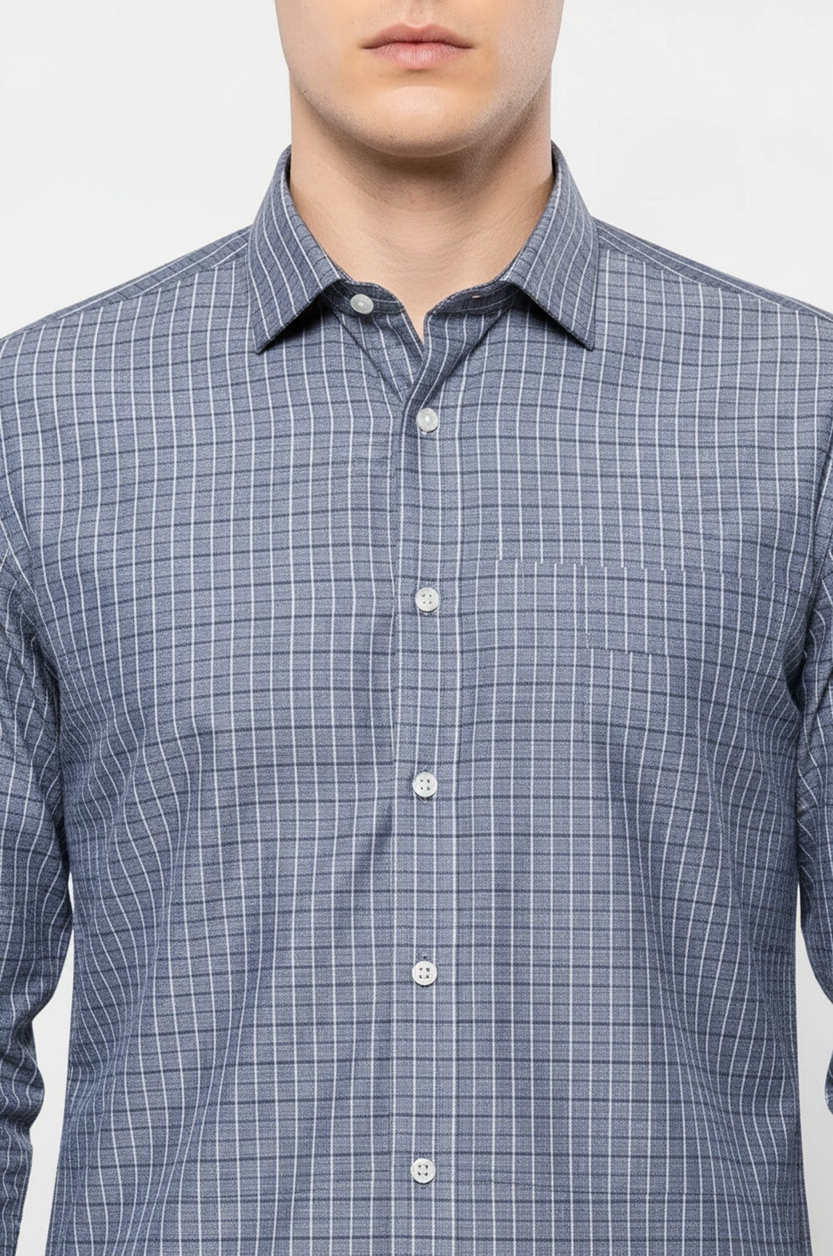 Kare Desen Gri Uzun Kollu Gömlek | Wessi