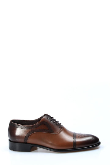Erkek Klasik Kahverengi Deri Delikli Desenli Oxford Ayakkabı - Wessi