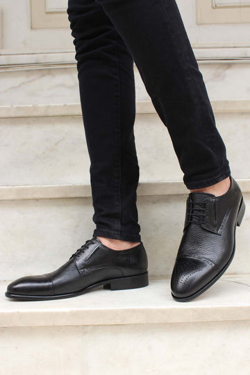 Erkek Siyah Deri Bağcıklı Oxford Ayakkabı - Wessi