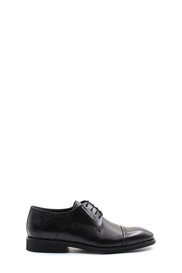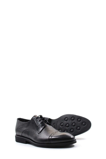 Erkek Siyah Deri Delikli Desenli Oxford Ayakkabı - Wessi