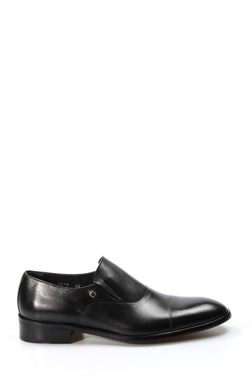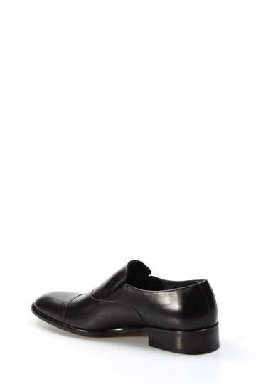 Erkek Zarif Siyah Deri Bağıcıksız Loafer - Wessi