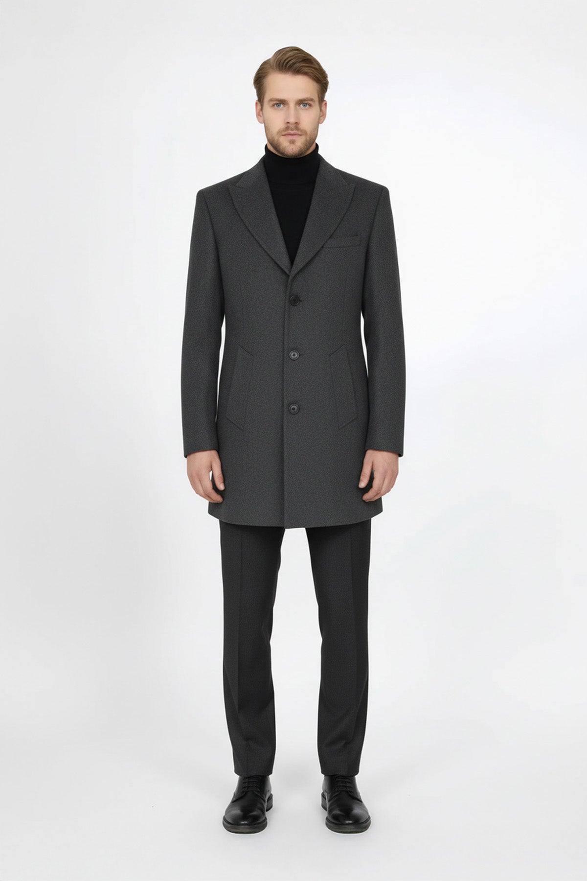 Füme Geniş Yaka Yün Erkek Kaban - Wessi
