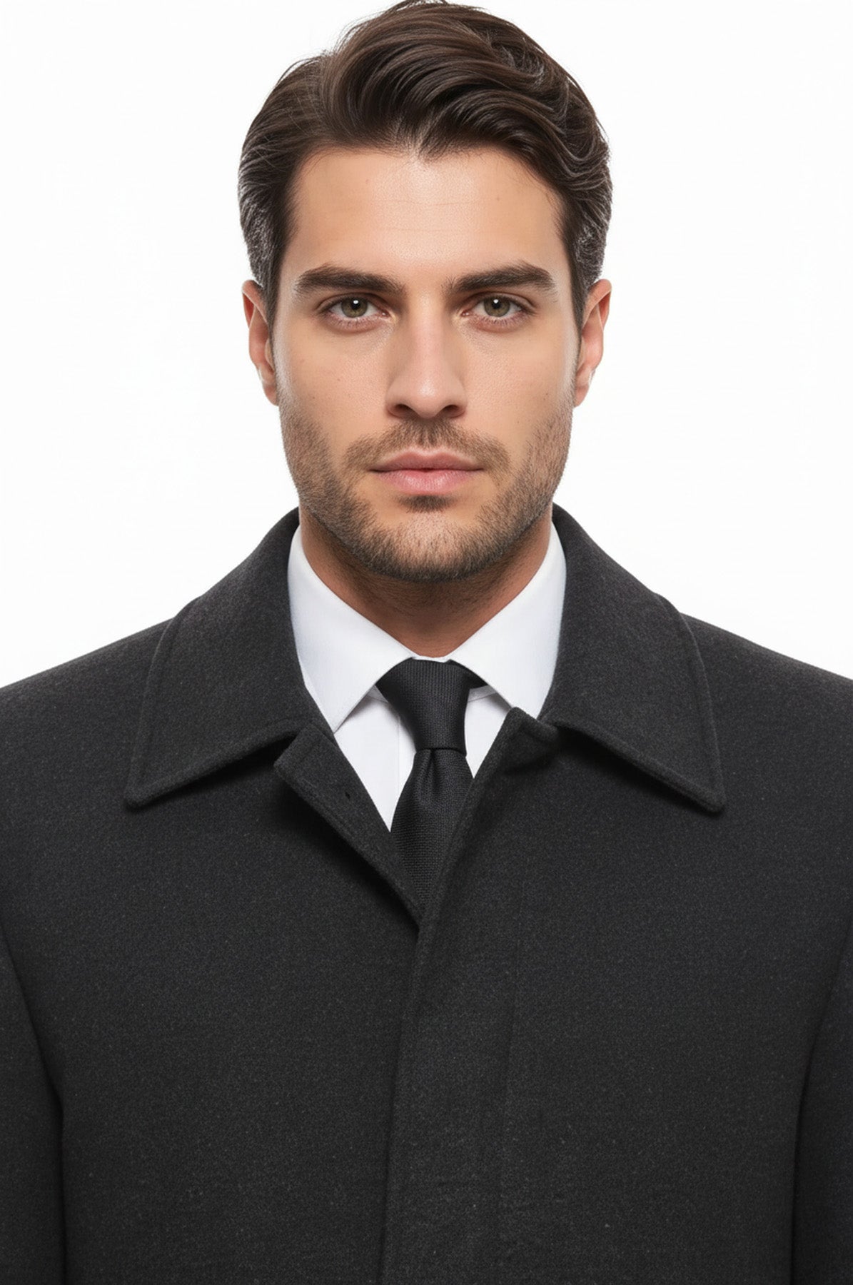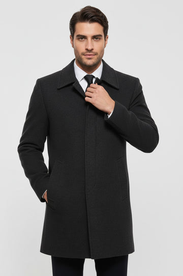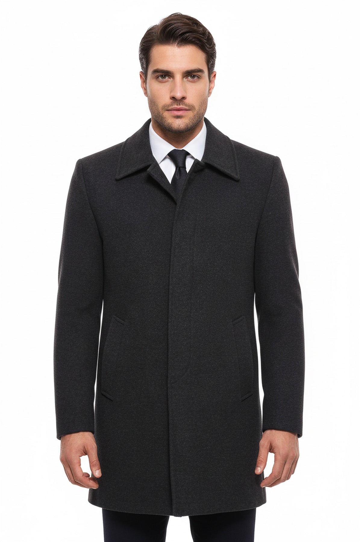 Füme Gizli Düğme Sivri Yaka Kaban - Wessi