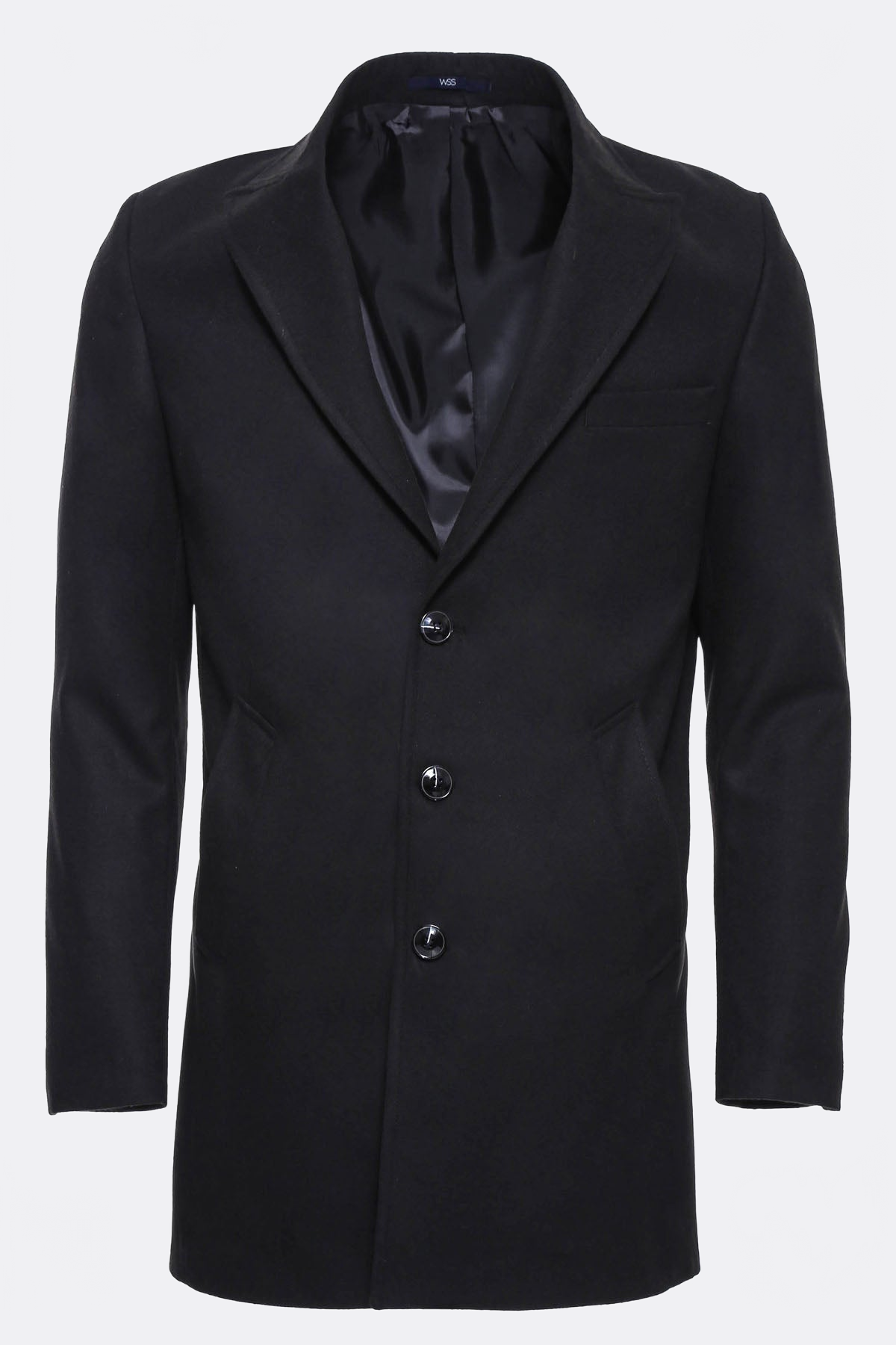 Geniş Yaka Diz Üstü Siyah Erkek Palto - Wessi