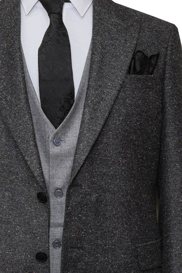Gri Ceket, Yelek, Beyaz Gömlek, Siyah Pantolon ve Kravat Kombini - Modern Stil - Wessi