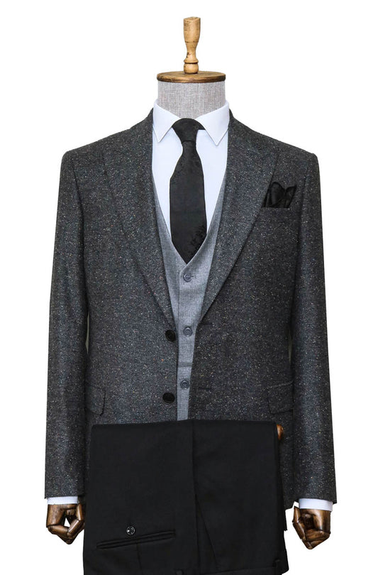 - Gri Yelek: Ceketle uyumlu olarak tasarlanmış olan yelek, görünümünüze sofistike bir hava katar. Özel kesimi sayesinde vücudunuza tam oturur.