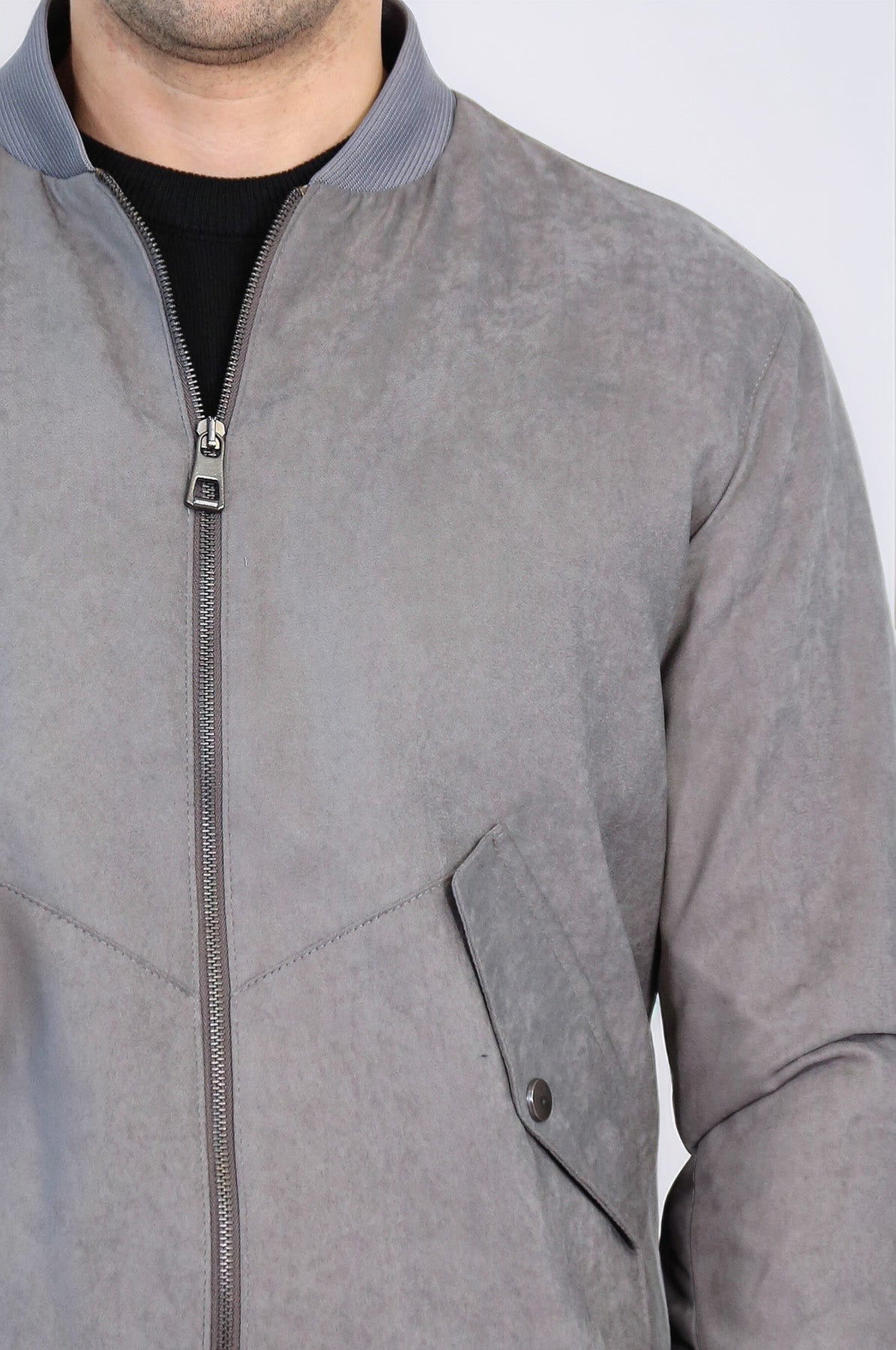 Gri Cepli Süet Bomber Mont - Wessi